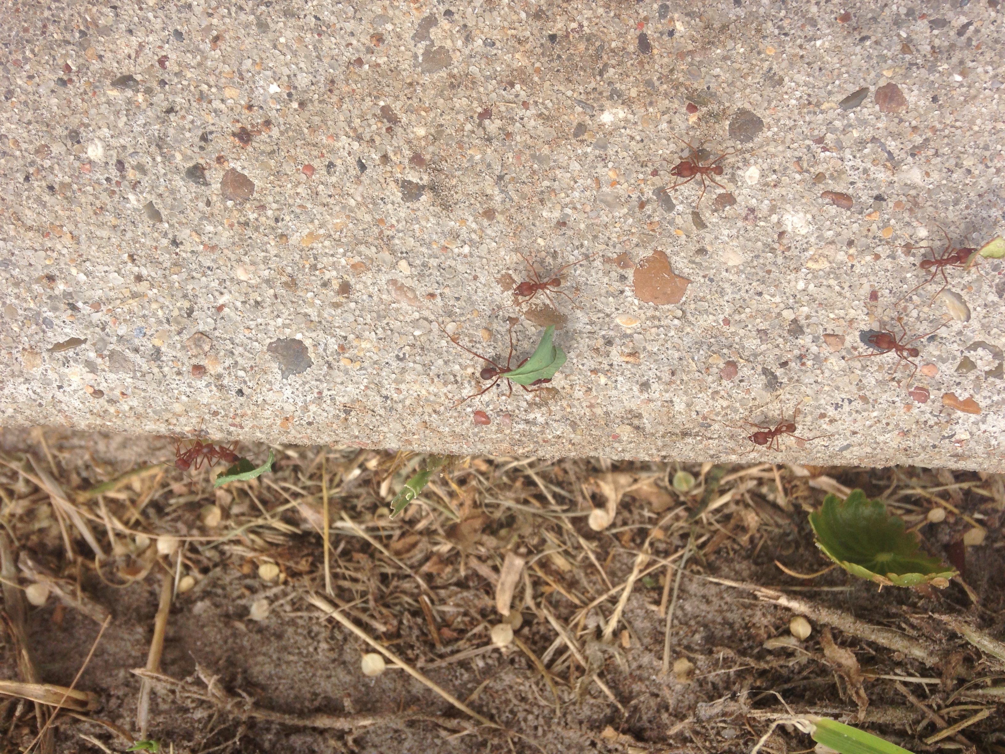 We have a colony of cutter ants that live under the dune boardwalk. What you are seeing is the workers carrying pieces of clover that other ants cut back to the nest. The ants heading to the left of the photo are holding the leaves by their hind legs. The ants going to the right are heading for a clover pick up. Okay, so maybe a bit strange but I thought it interesting.