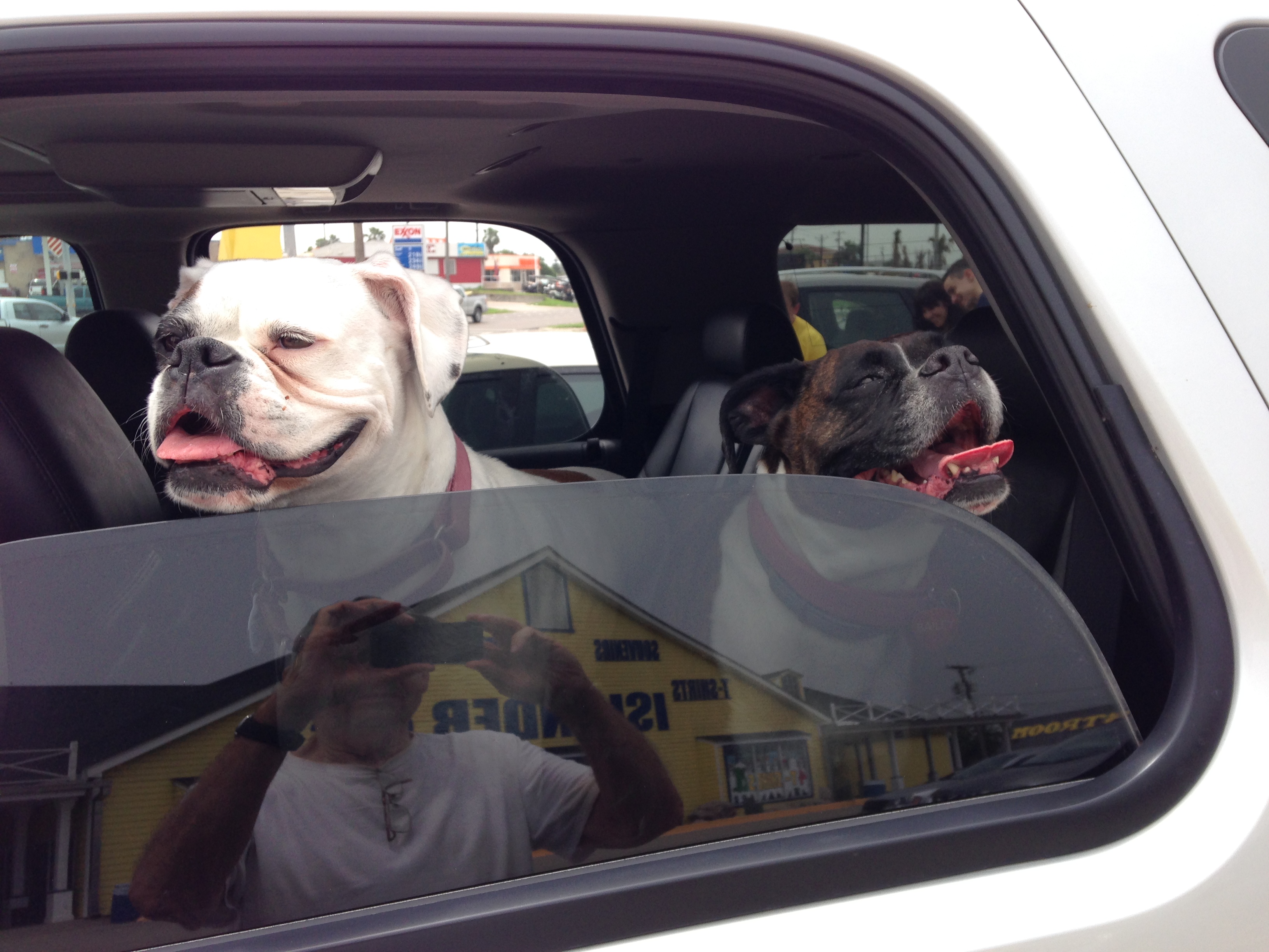 When I was taking the photos of the buildings around town, I had the dogs with me. They were nice enough to pose for a photo. I didn’t realize it, but the professional photographer is in the glass reflection. So I guess we could call this “Lucy and Bailey in relief with a dope.”