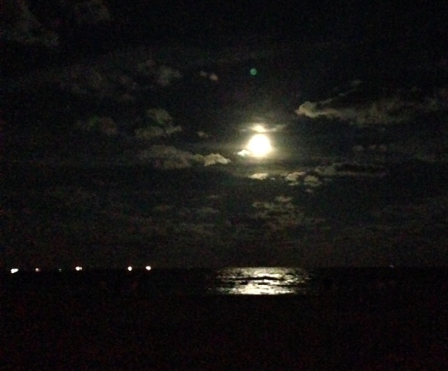 I did try to get a nice shot of the moon reflecting off the Gulf but was only a little lucky. My wife Molly, on the other hand, was very successful. (Photo Credit; Molly D. McCormick) Those lights in the background are freighters waiting to enter the ship’s channel to pick up or unload their cargo.