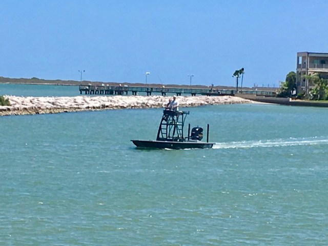 Here is an outboard twin fishing boat coming back to the marina from a Gulf trip.