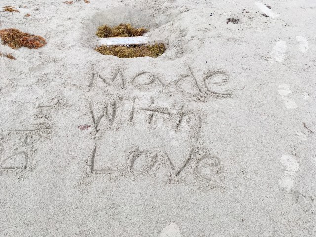Don’t you love how creative tourists are with the messages they leave in the sand?!? And kudos to the turtle patrol for saving lives!