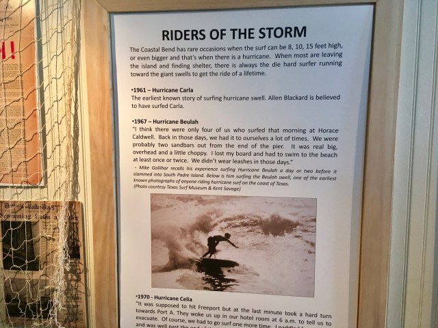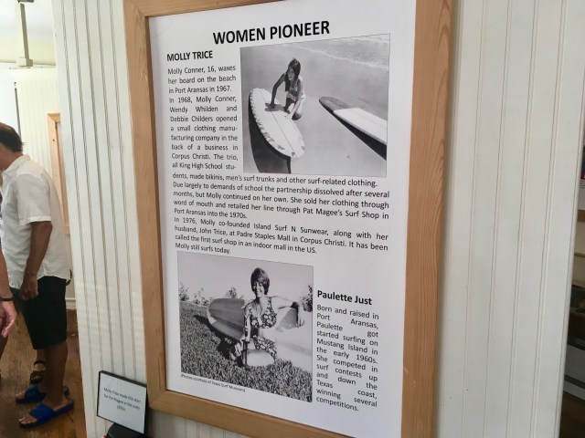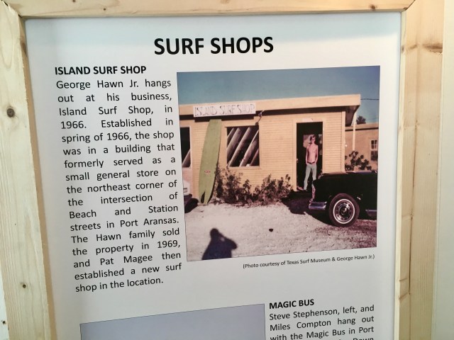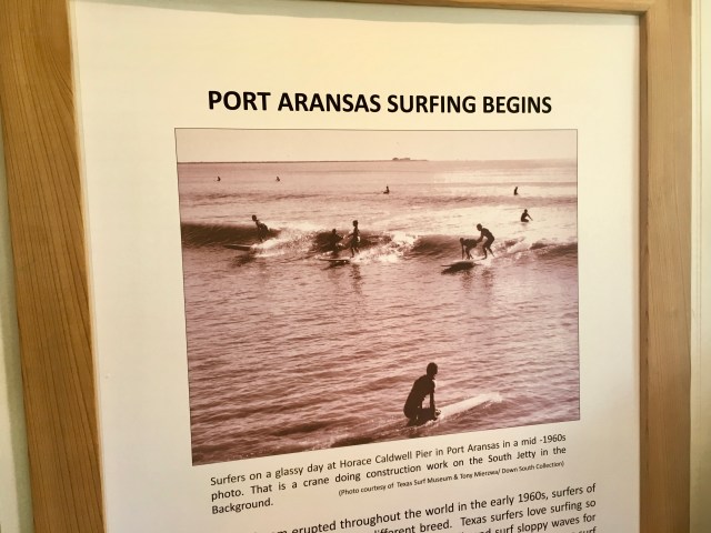 This display points out the origin of surfing in Port Aransas in the early sixties.