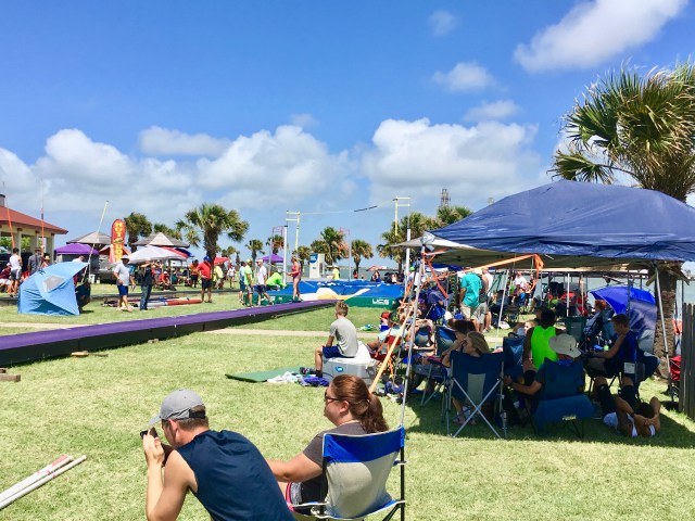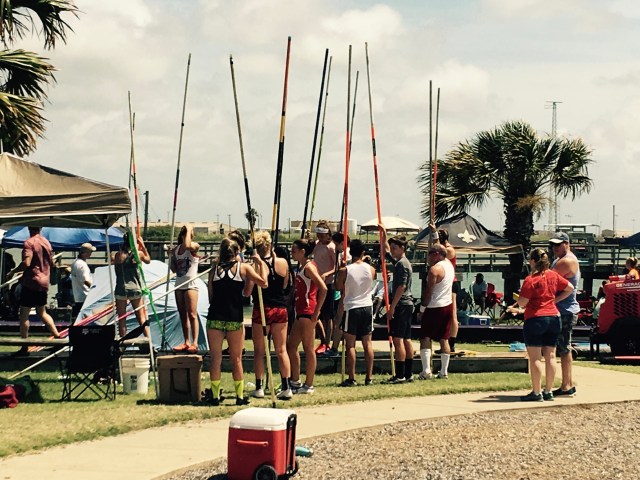 Yes, the headline is correct. Every year Port Aransas host a major pole vaulting event. Pole vaulters come from all over Texas to spend two days here testing their skills. The event draws college athletes as well as Olympic team members. The whole idea is for the students and athletes to get together and participate in some wholesome, friendly rivalry. This event took place yesterday, and I was certainly glad I went. I hope you enjoy it.