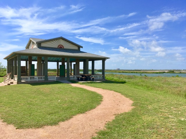 A wildlife refuge named Charlie’s Pasture. Here is the pavilion with bay water in the background