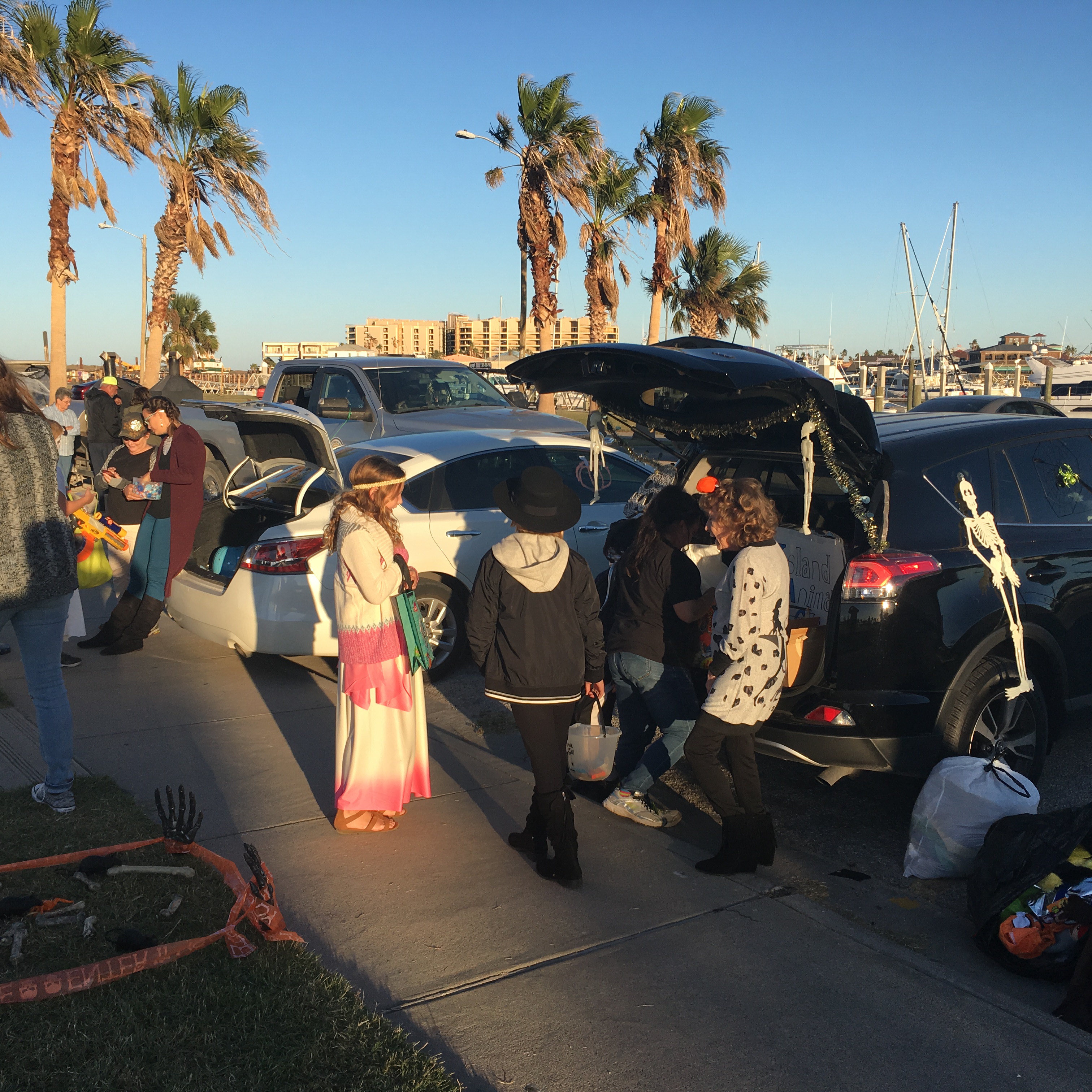 We had a cold front move in for Halloween. My photos this week show islanders bundled up like they are in Alaska. This weekend had two Halloween events pictured here. The first is the annual sand pumpkin carving event. The second is the Trunk or Treat event held in the park. I hope you like them.