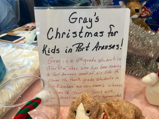 The card below explains this heartwarming story further, and I’m sure the fourth-grade children of Port Aransas will be happier as a result of Gray’s compassion.
