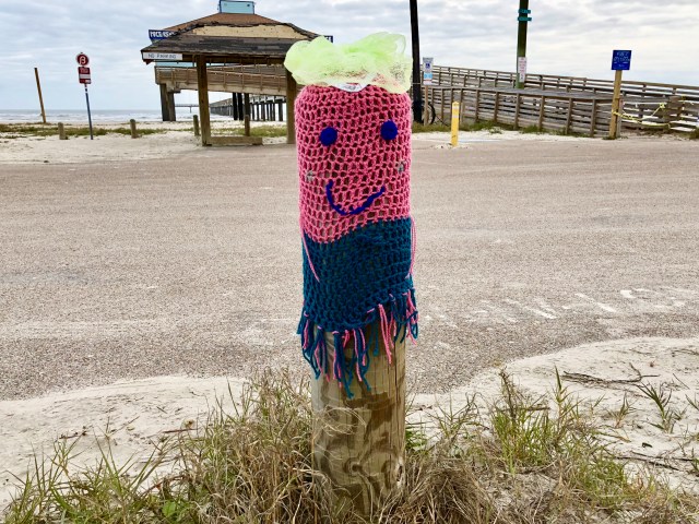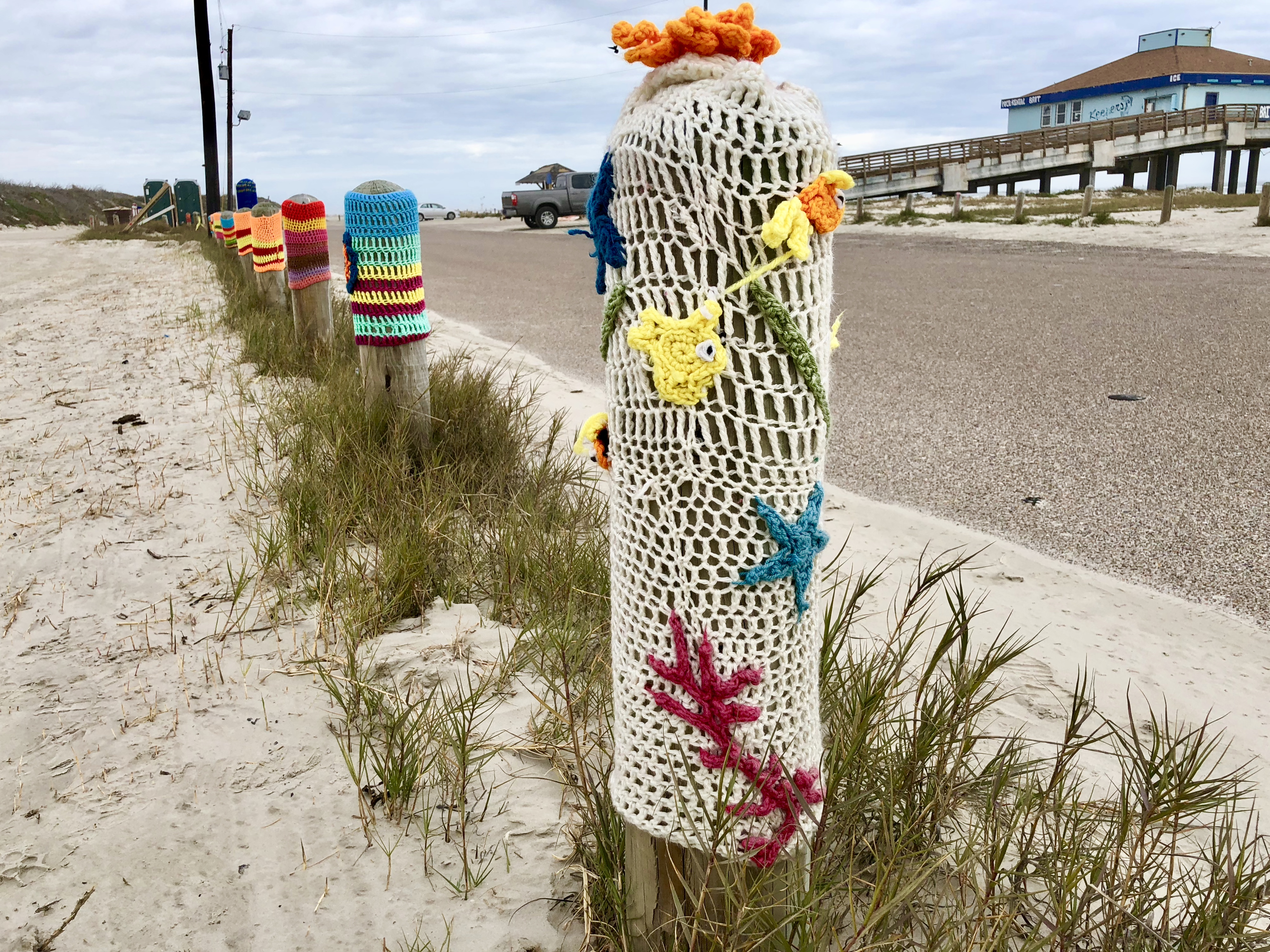 Art can be found in many places and thanks to John Howell, we now have a special view of the neighbourhood in Port Aransas as well. The crochet artist remains anonymous and that is a mystery in itself.