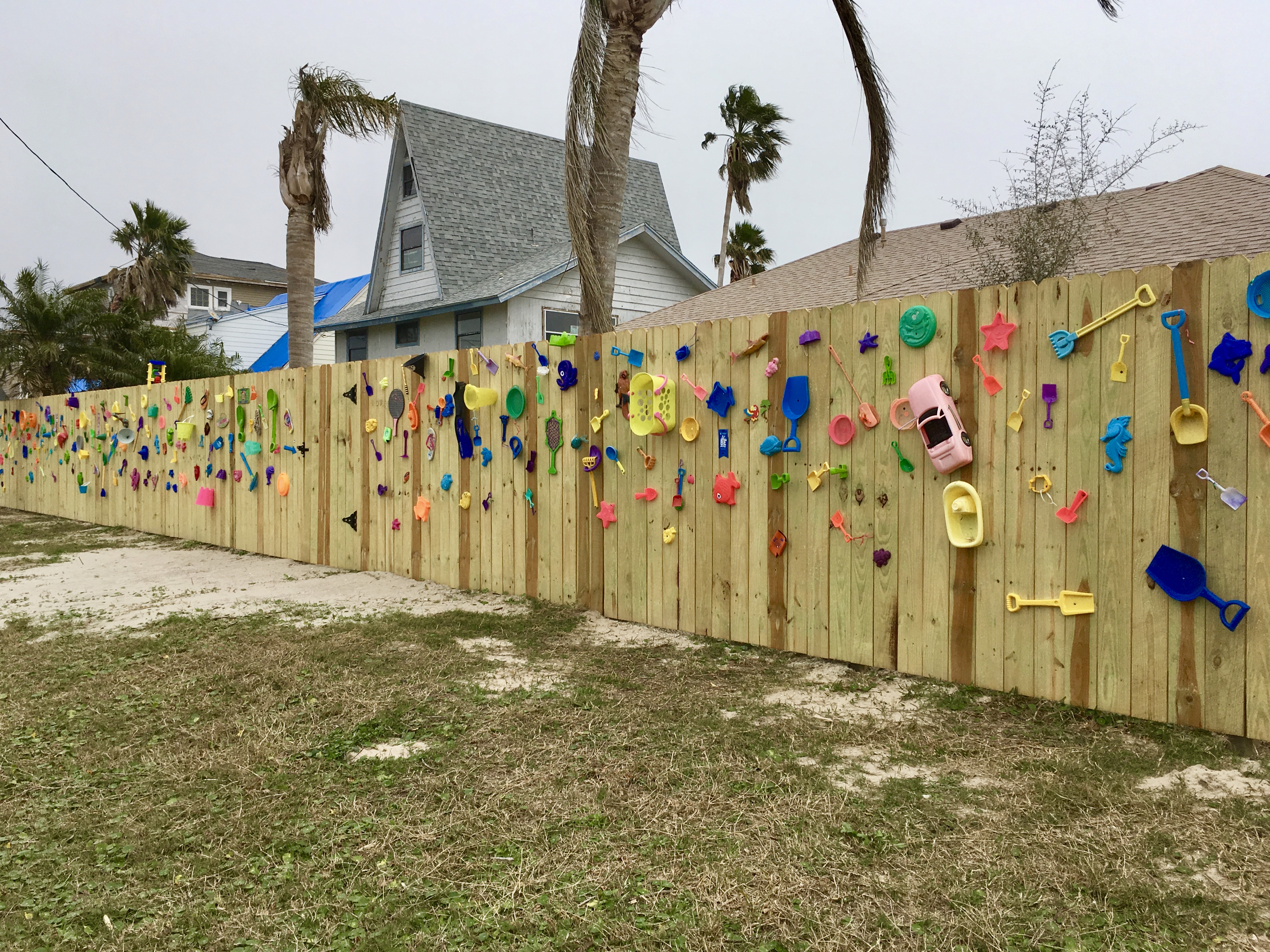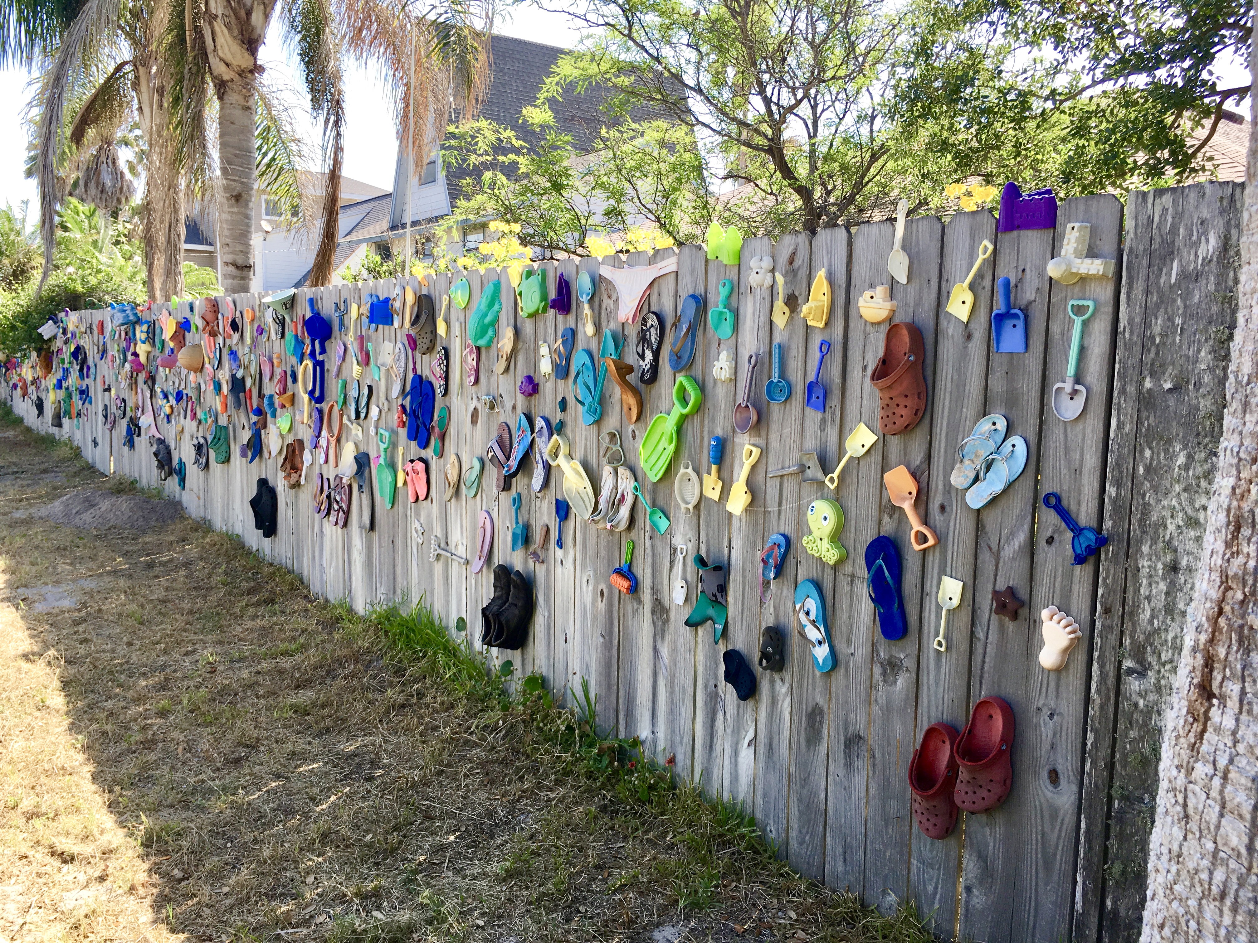 Some of you may recall on one of my tours there was a fence covered with numerous objects found on the beach. Hurricane Harvey took it and there was not enough left to take a photo.