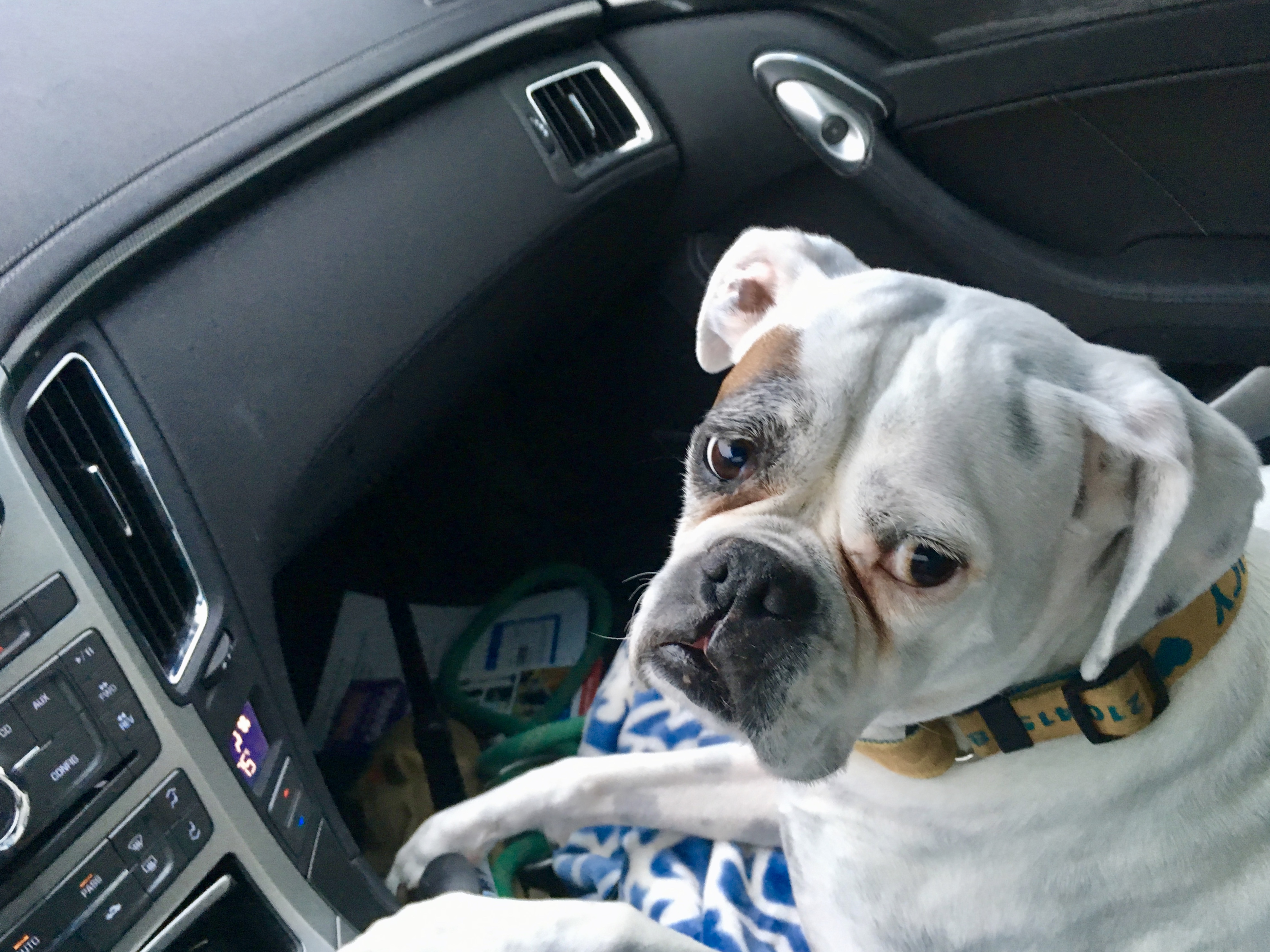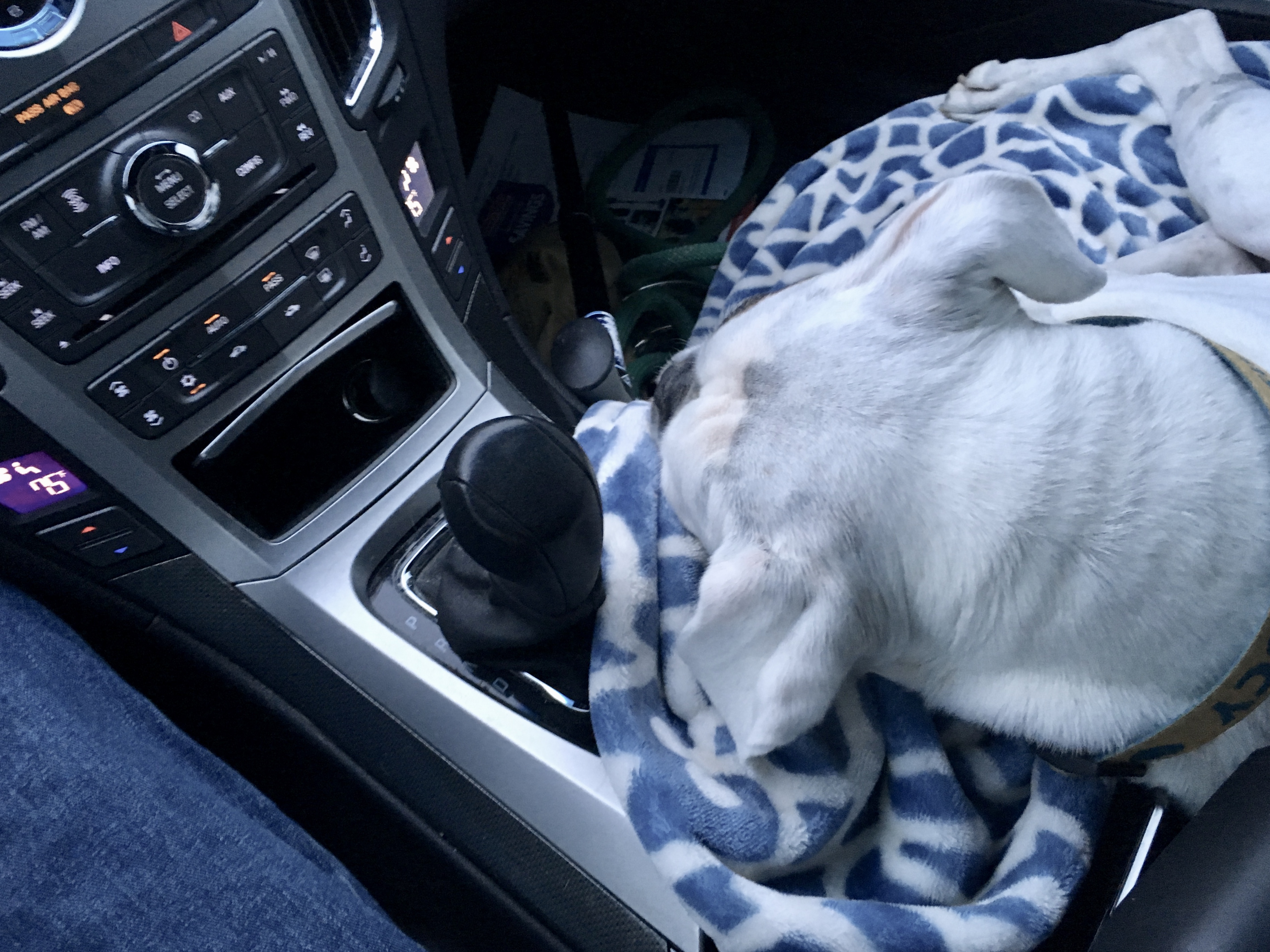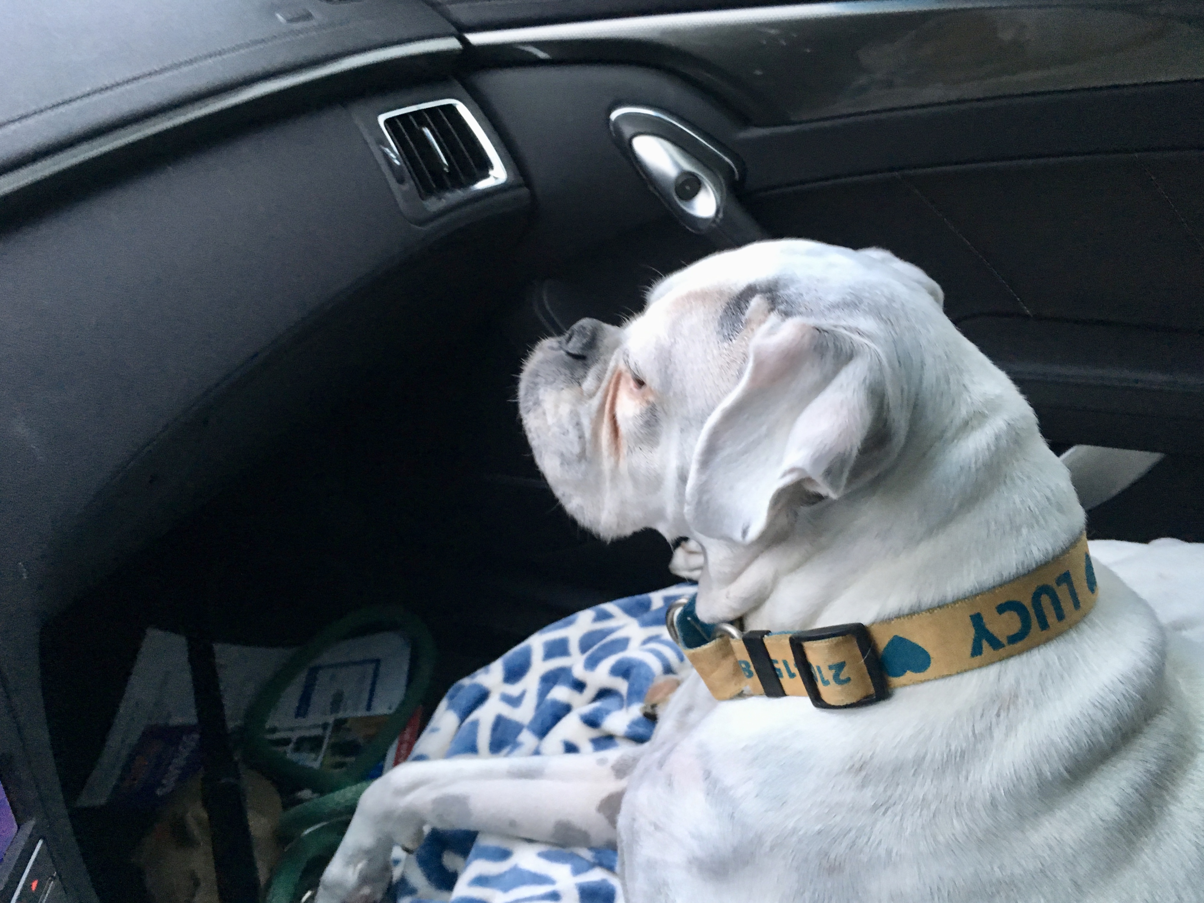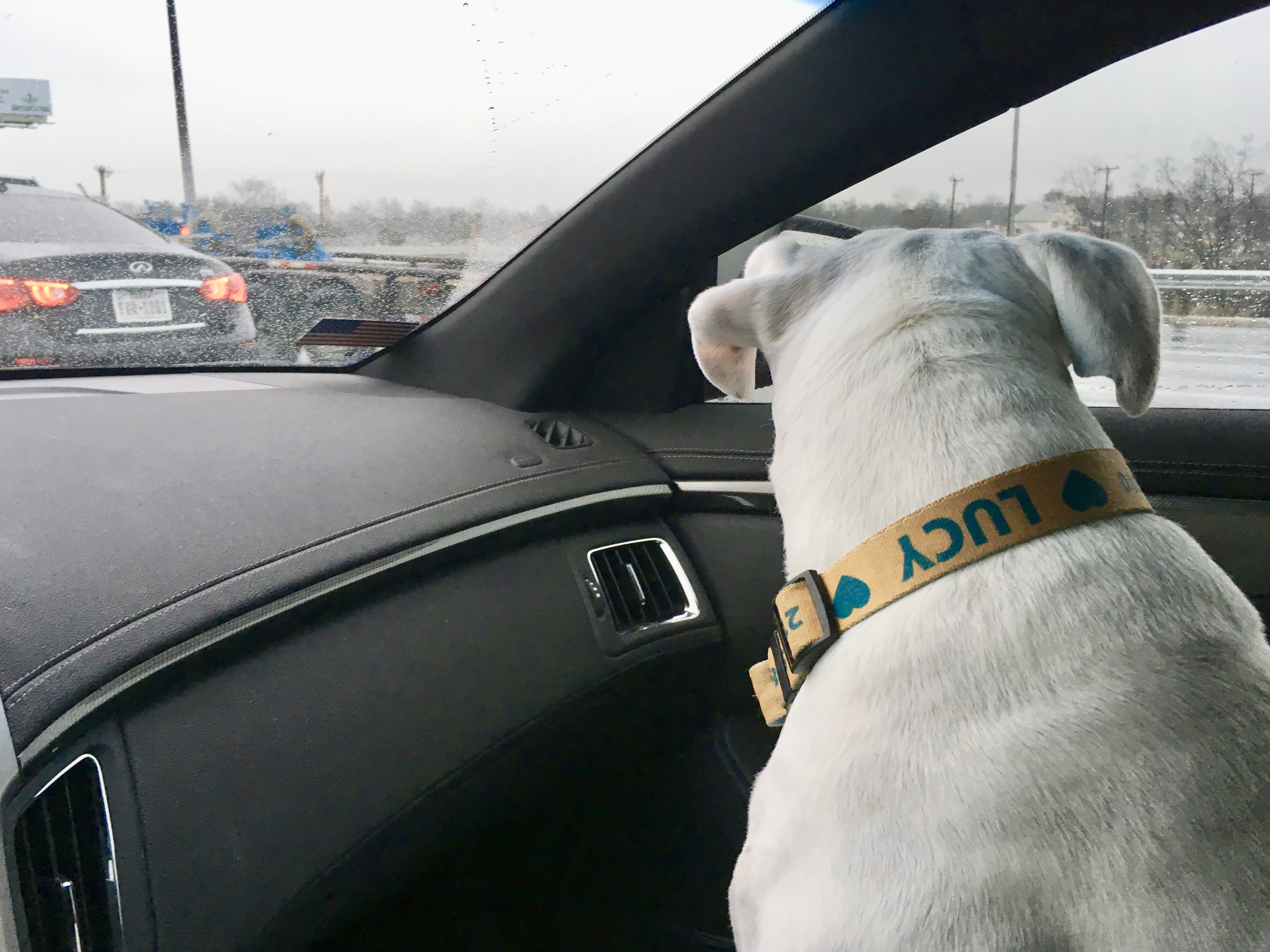 Aww… that was a very big day for Lucy. Traffic, wipers, people. Good thing you brought along her blanket, John. 🙂