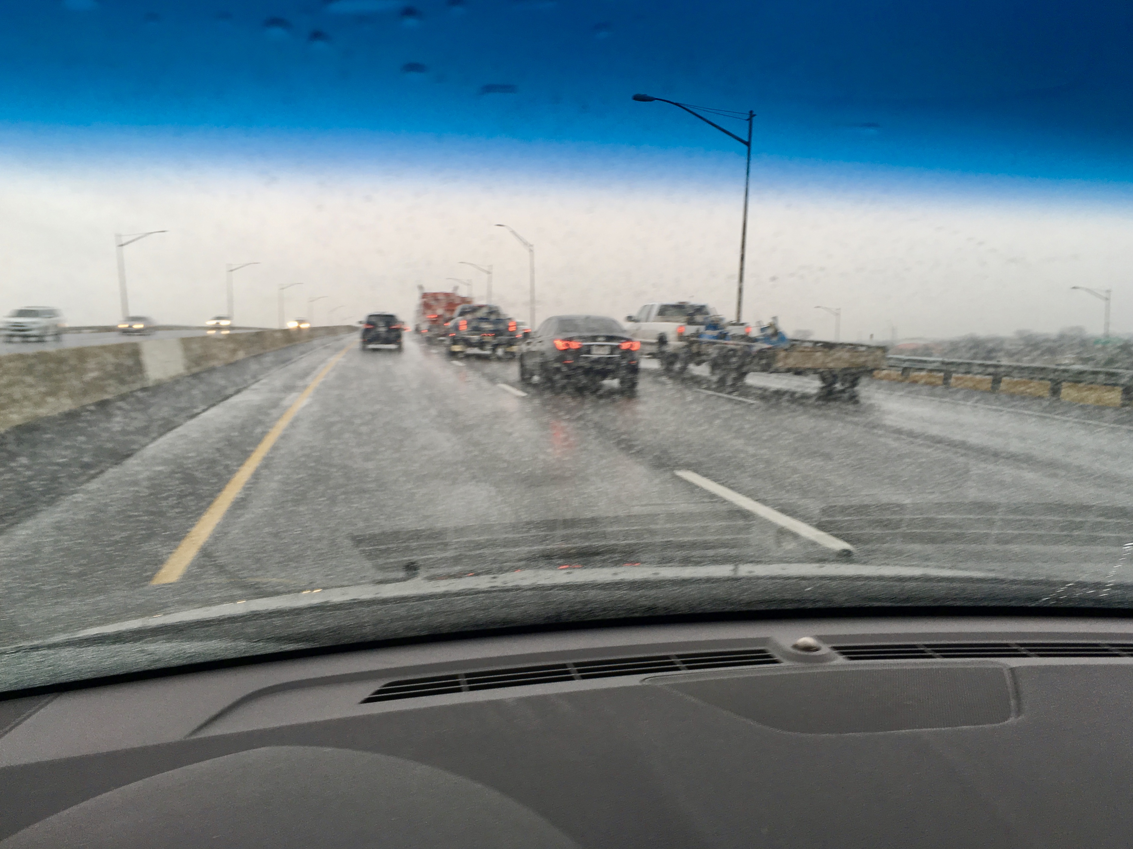 “It could be an accident. At the least, the rain is slowing people down.”