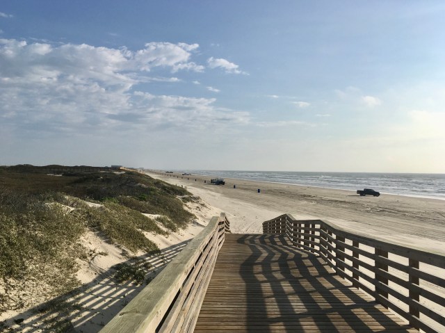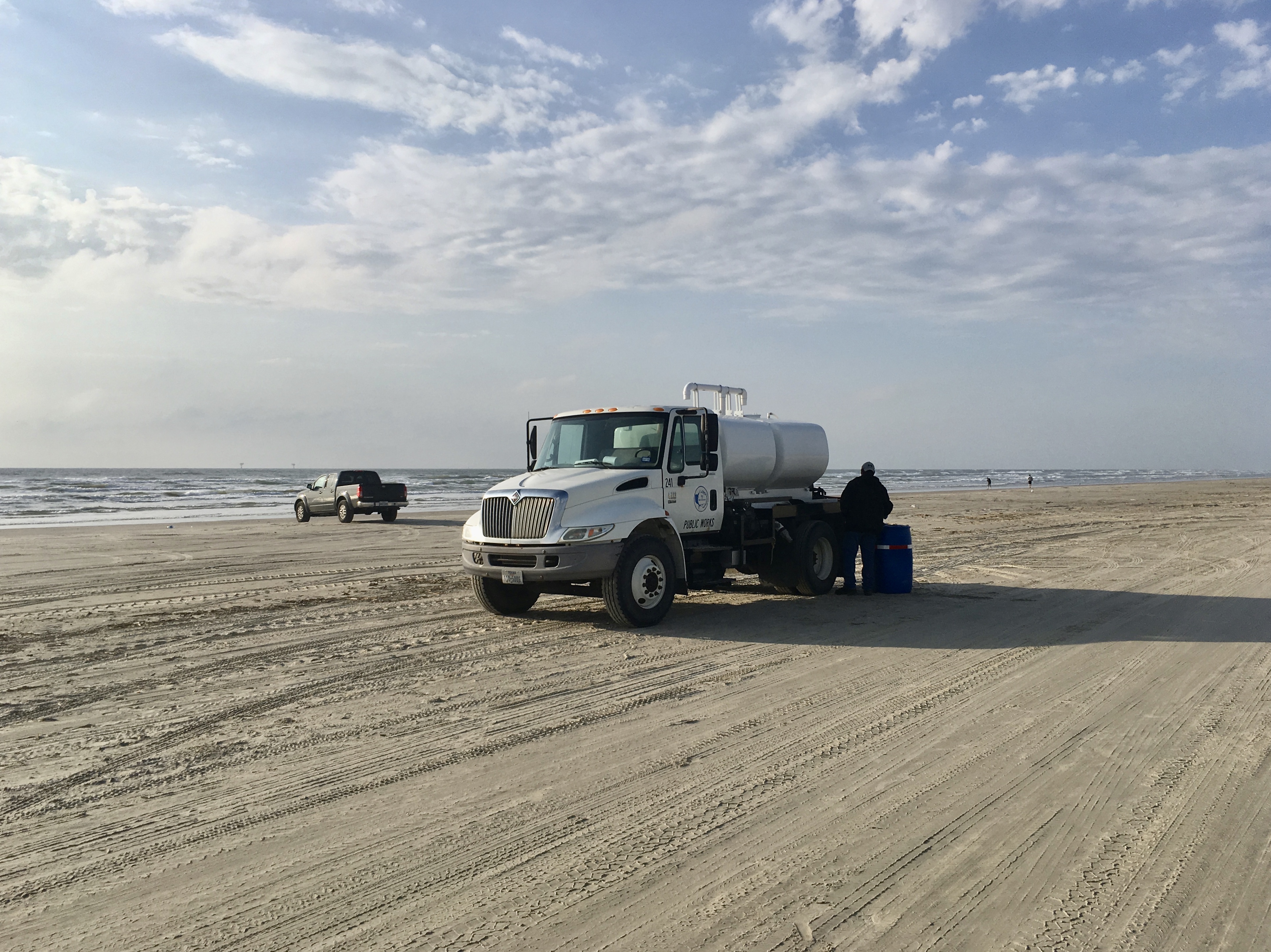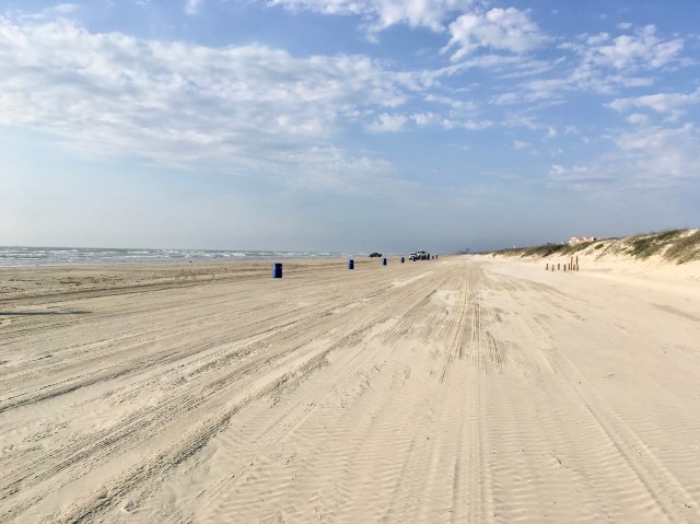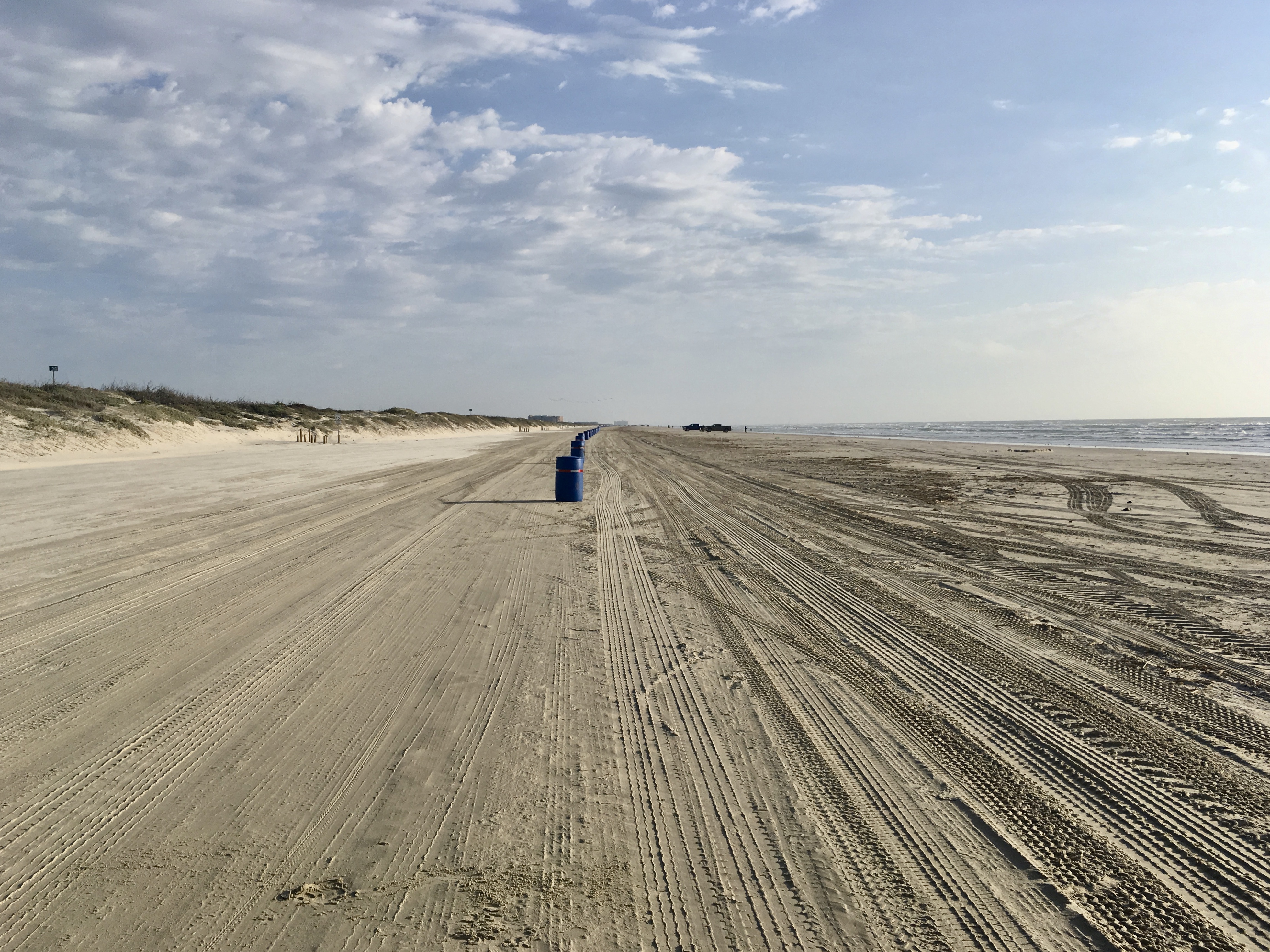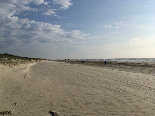 Here is a long view looking back at the truck. Those poles on the right are for trash cans. Unfortunately, Hurricane Harvey took them, and the city is not sure if the new ones will arrive in time. (Spring Breakers start arriving on the 9th) We may be up to our necks in trash. Spring Breakers are not very good at picking up their trash.