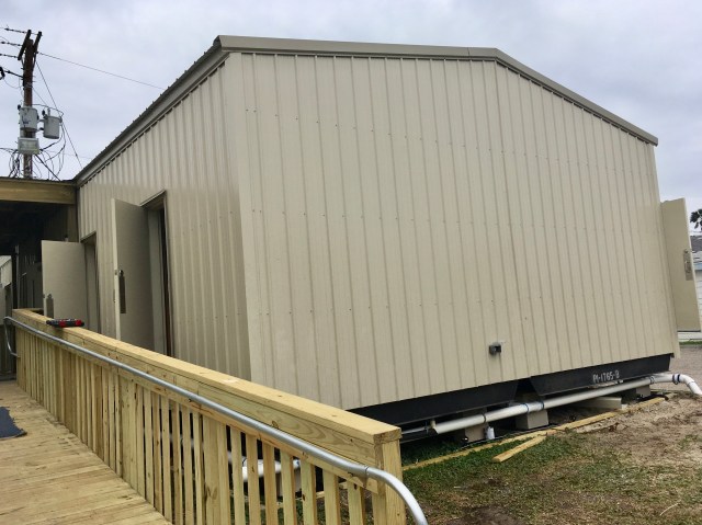 Here are the temporary police headquarters. It is across the parking lot from the old.