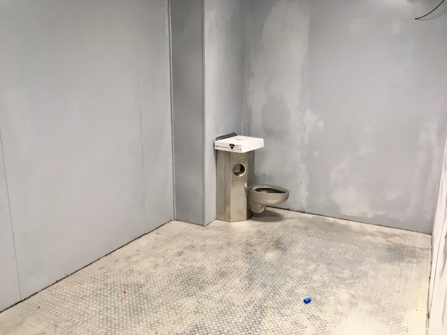 Here is a shot of one cell. Notice the metal floor, sink, and toilet. Not very comfortable. Well, let’s hope no one we know ends up here.