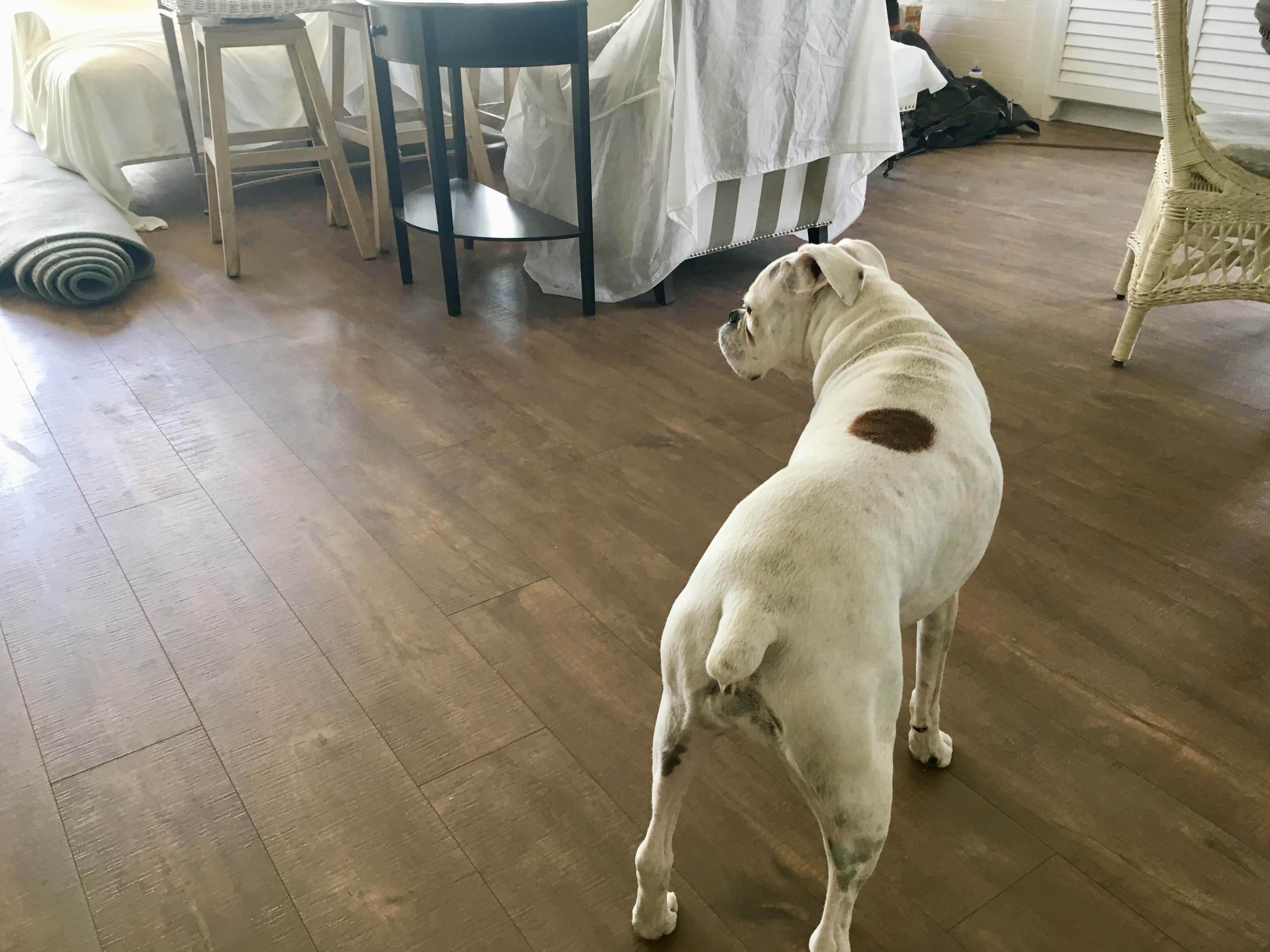More domestic rediscovery for Lucy and Bailey – they might be a bit phased for now by the refurbs, but I’m sure they’ll like their new floors even better than the old ones! 😀