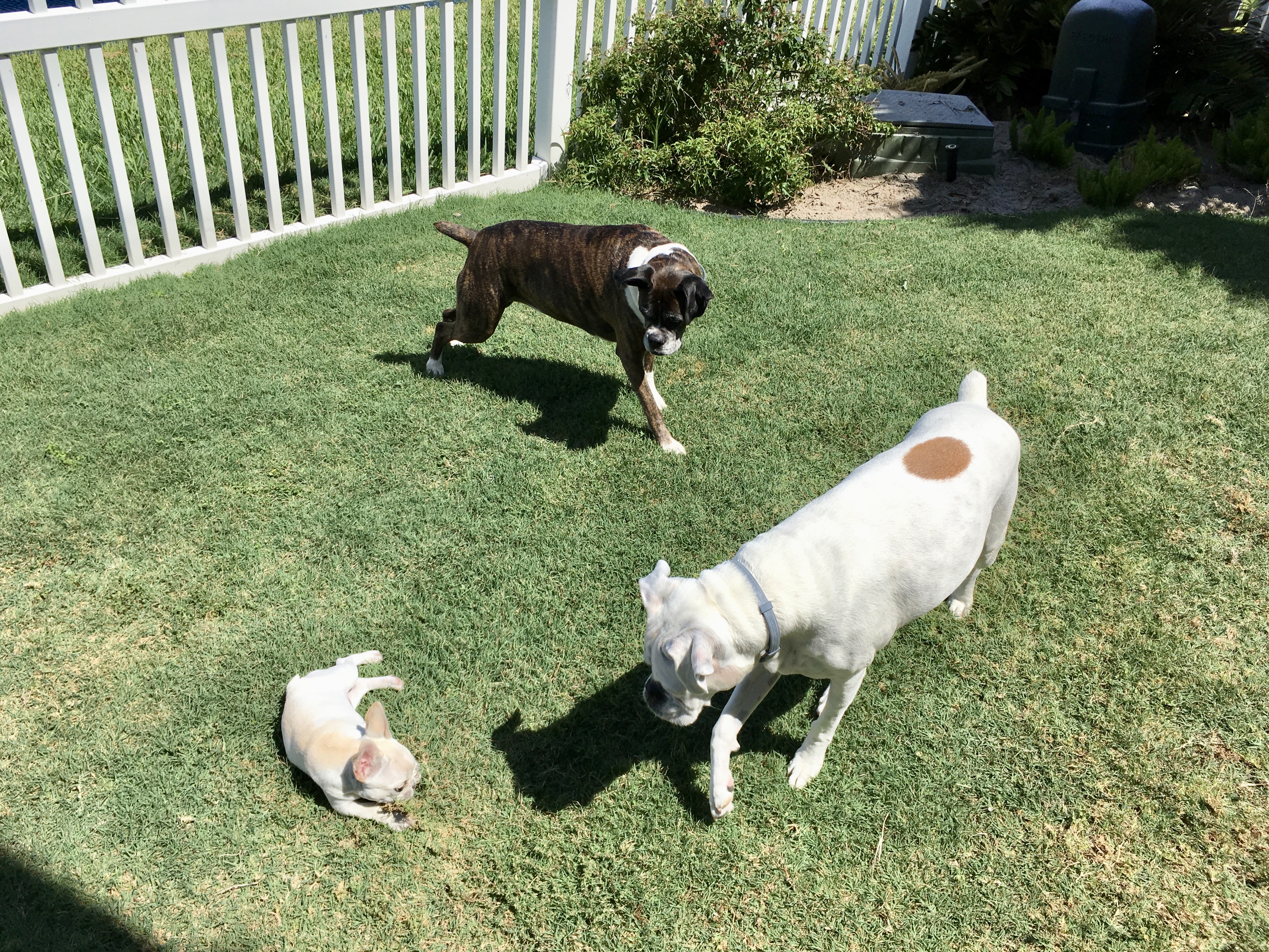 Working hard in the yard and training the new kid on the job – that’s a pretty hard day for Lucy and Bailey – very good teachers. Twiggy is just cute as a button.