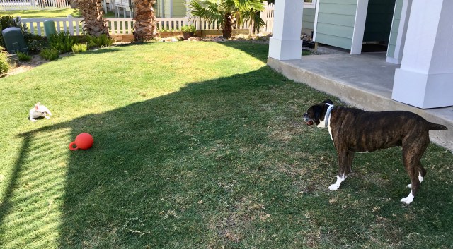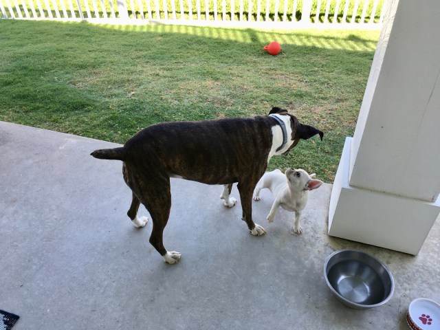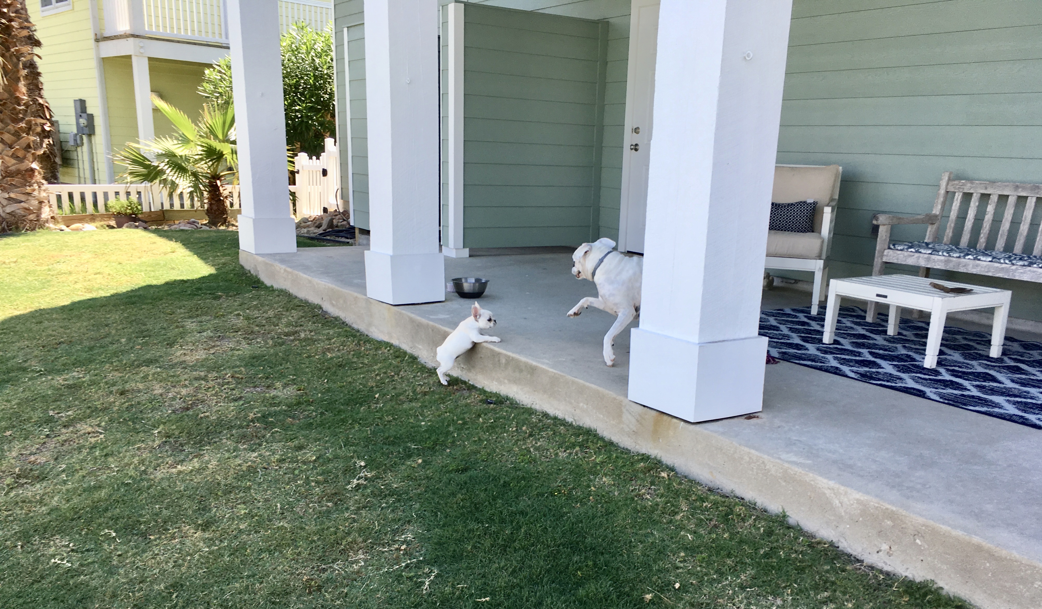 “Hi, Bailey. Lucy just showed me how to jump up on the porch.”