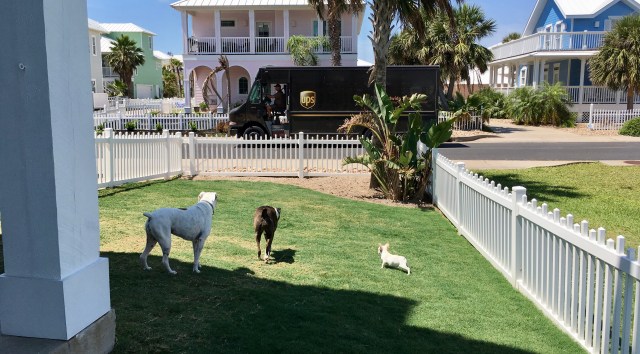 “Not sure. It’s a custom. All dogs bark at the UPS person.”