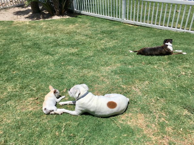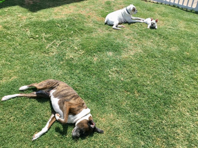 John W. Howell treats us to a delightfully lazy time with his three furry kids sunning themselves in the backyard. Please enjoy!