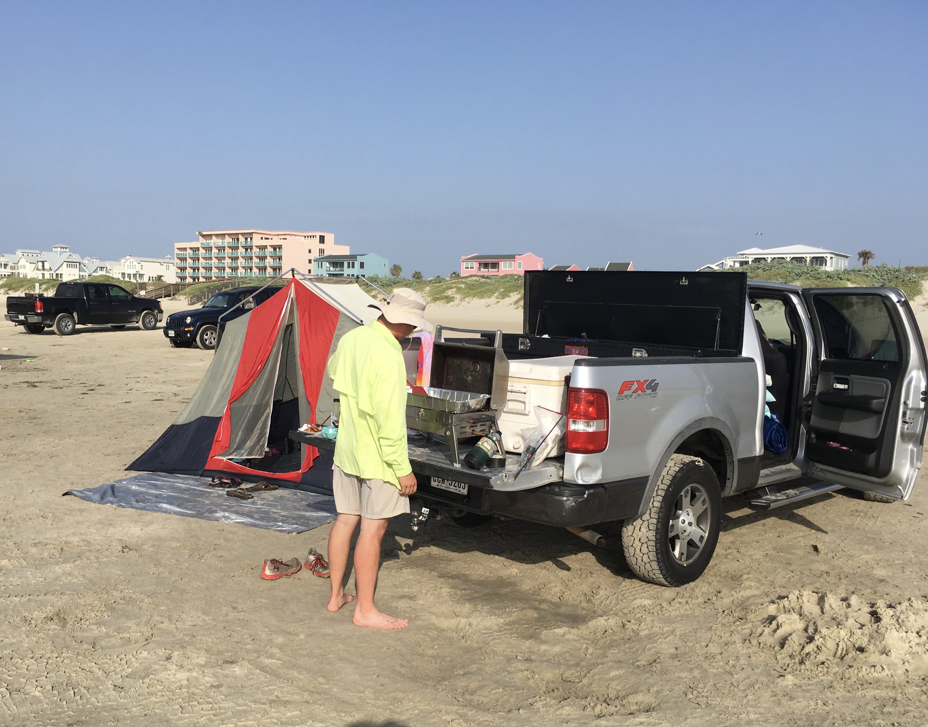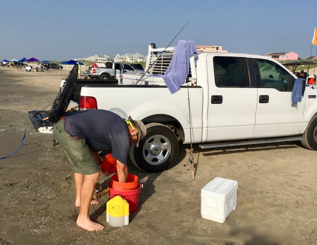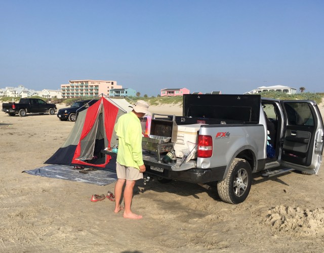 I didn’t know about surf fishing, but I love the photo. And, the pickup guy fixing breakfast, wonder if he’d share? I can almost smell the bacon. 🙂