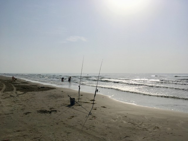 This is how you surf fish. You wade out with a rod and cast as far as you can.