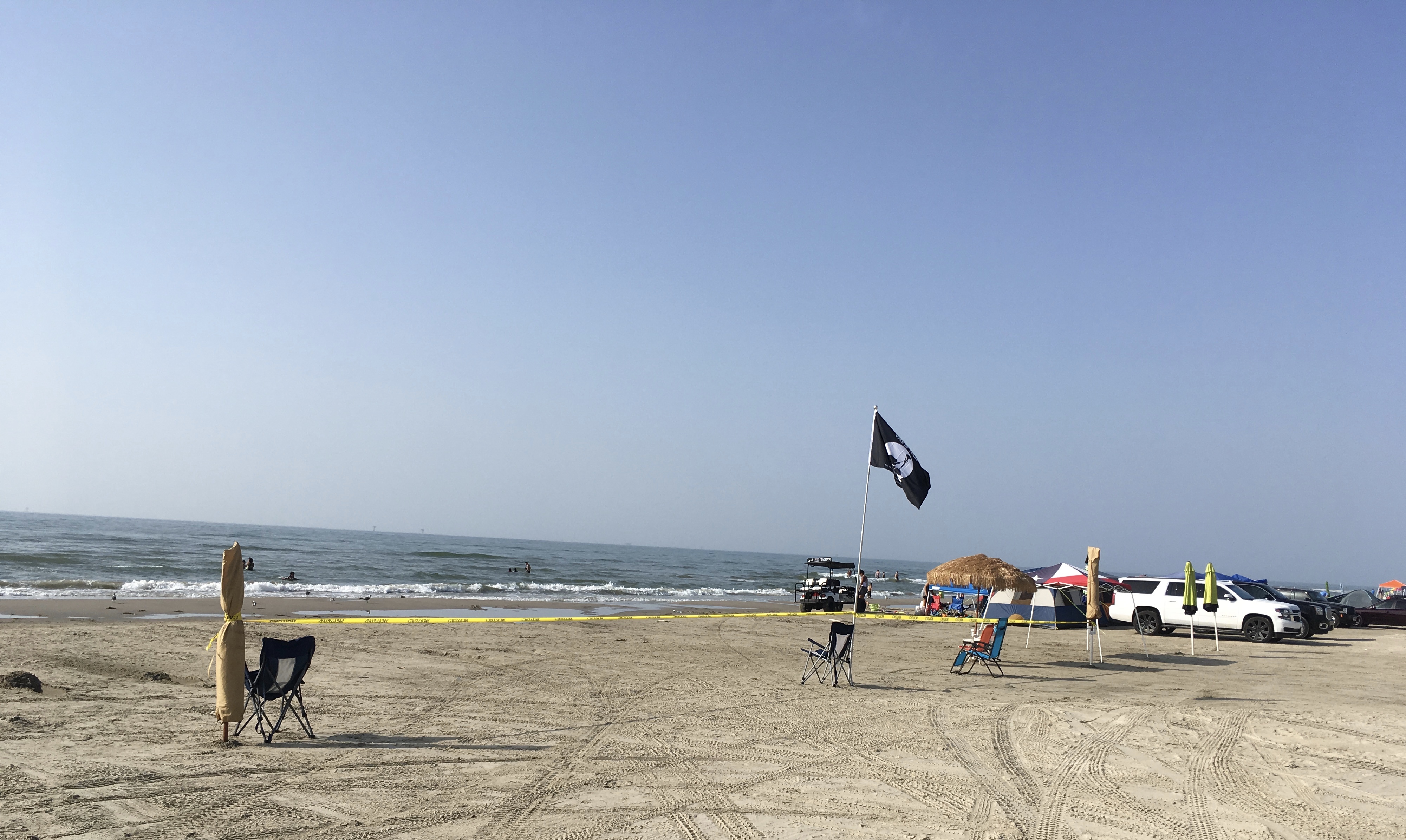 Here is what we all hate. Some idiot from San Antonio putting up caution tape to reserve an area that could accommodate twenty people. The big question, “Where the heck are they?” Probably in bed while you are out here trying to find a place. “Go ahead cut the ribbon and pull in.”