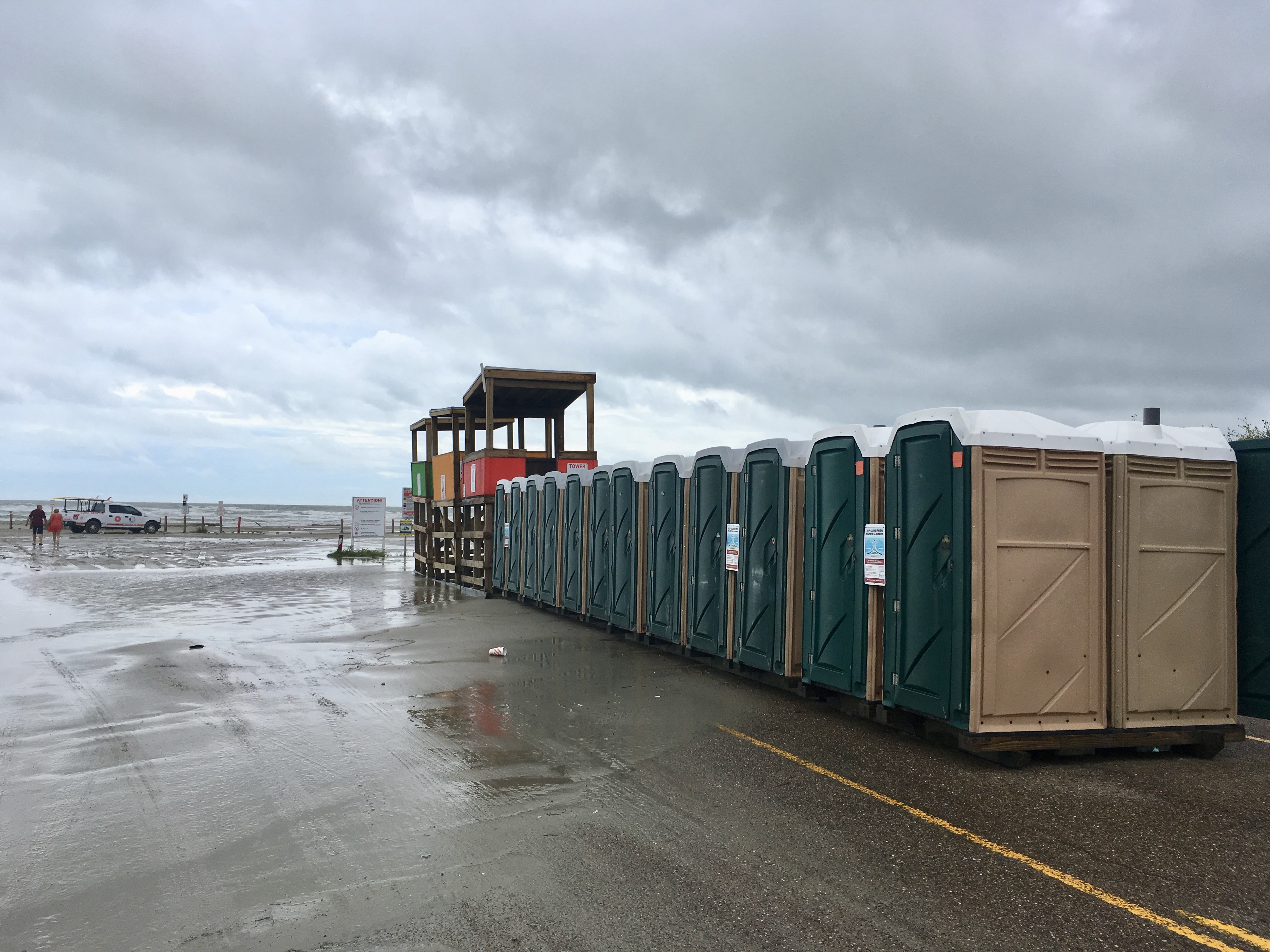 Given the high tides due to water being pushed against the dunes the city moved all the portable toilets to higher ground.