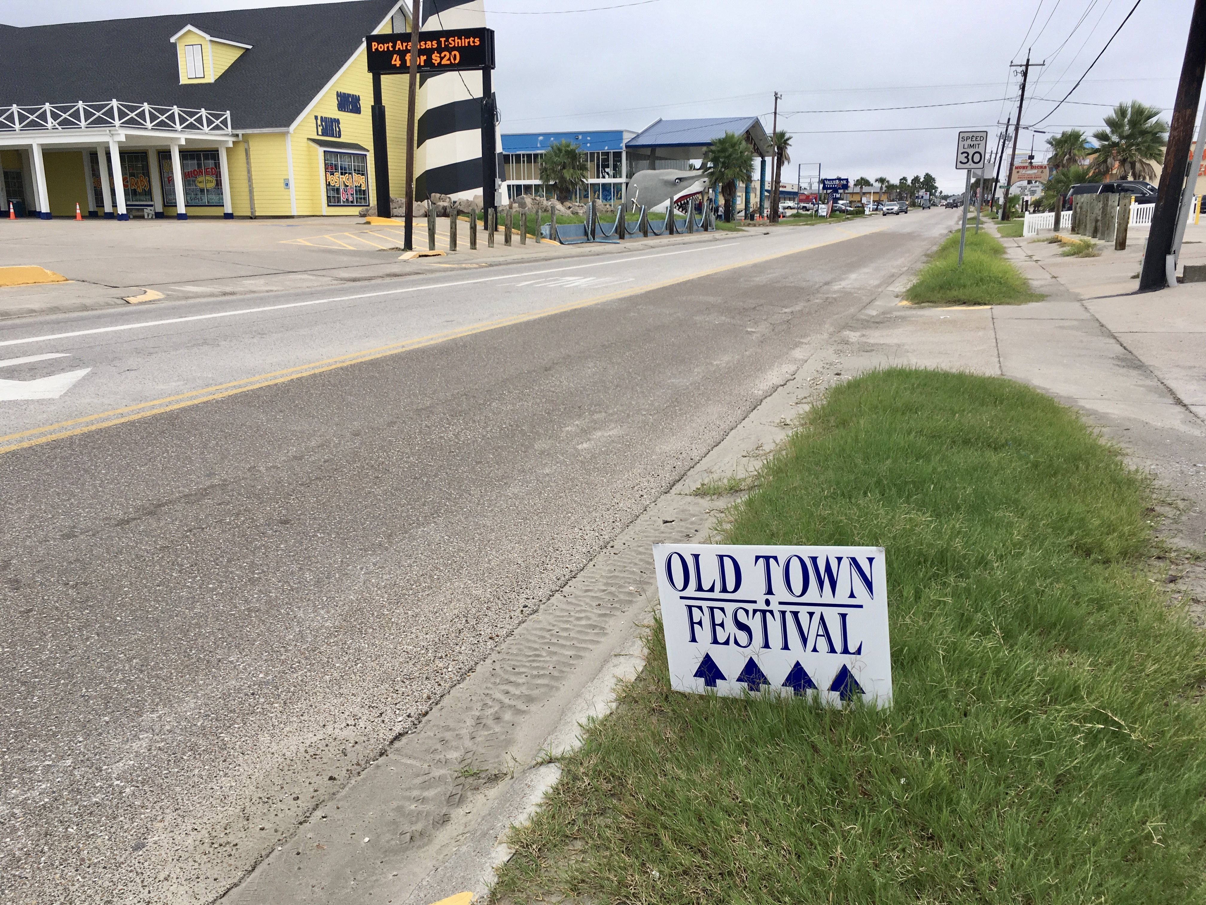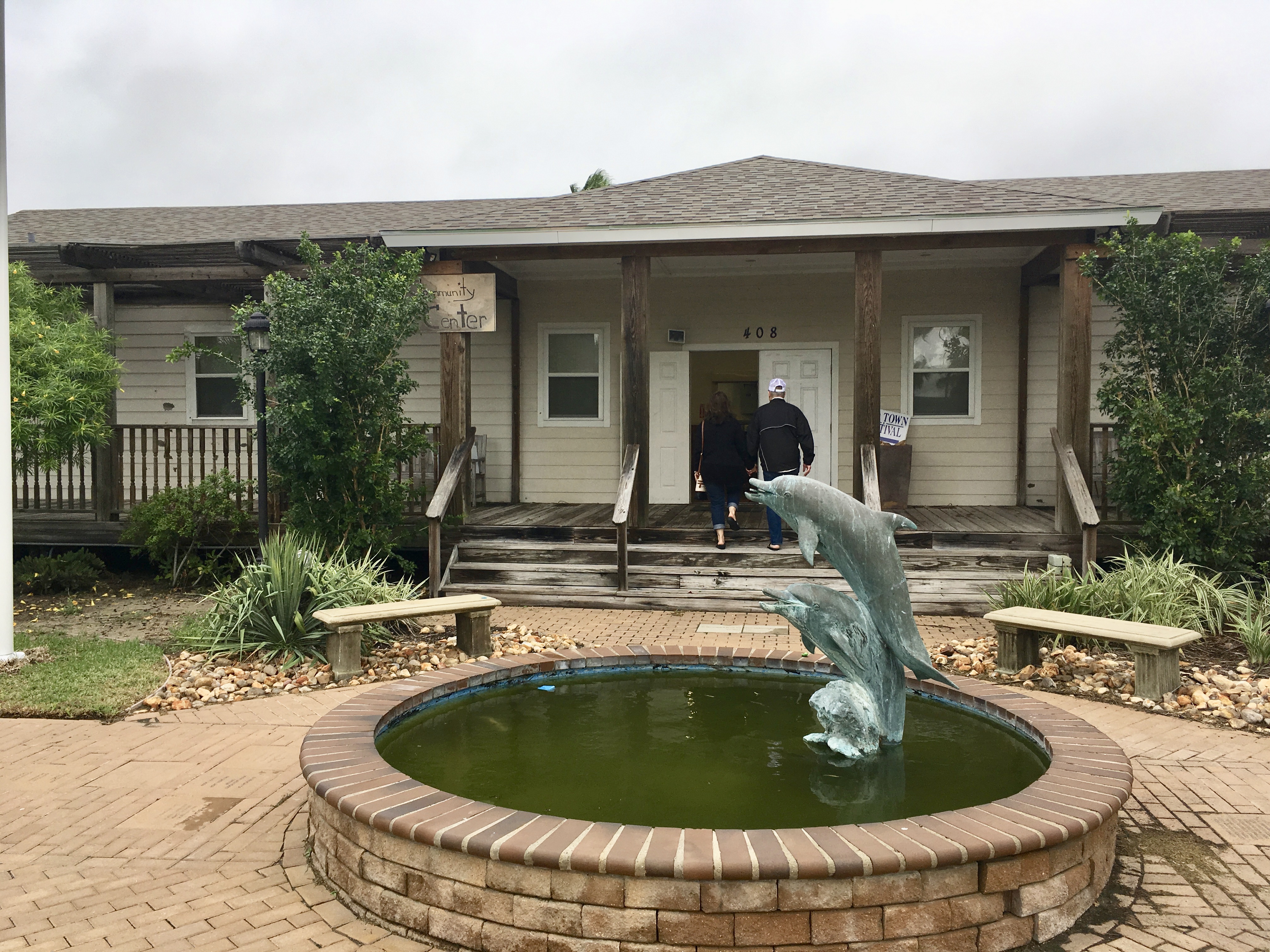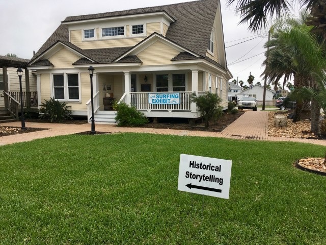 Here is a shot of the Museum where a special surfing exhibit is on display. The sign points to the community center where storytellers are relating Wild Sea Stories which are tales of Port Aransas’ past.
