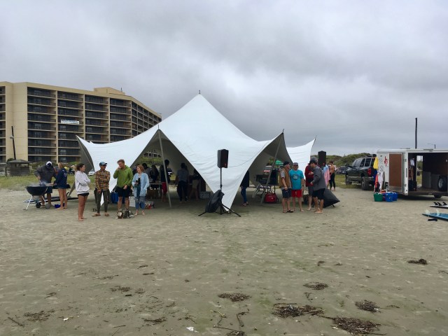 The first stop is The eighth annual Expression Session Surfing Contest. Here you seem some boards waiting for surfers.