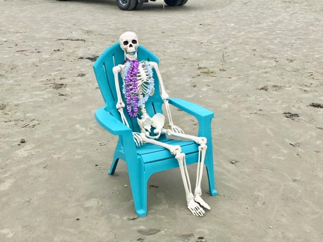 The tree giveaway reminded me of the replanting that took place in Galveston after Ike. This time, they got smart and opted for trees more suited to a barrier island than live oak. I loved that skeleton. There’s a jeep running around town here that has a skeleton wrapped around the spare tire on the back. Every time I see it, I laugh. Good to see the water temps down, too. The surfers don’t care, but it sure does mean an end to hurricane season — thank goodness!