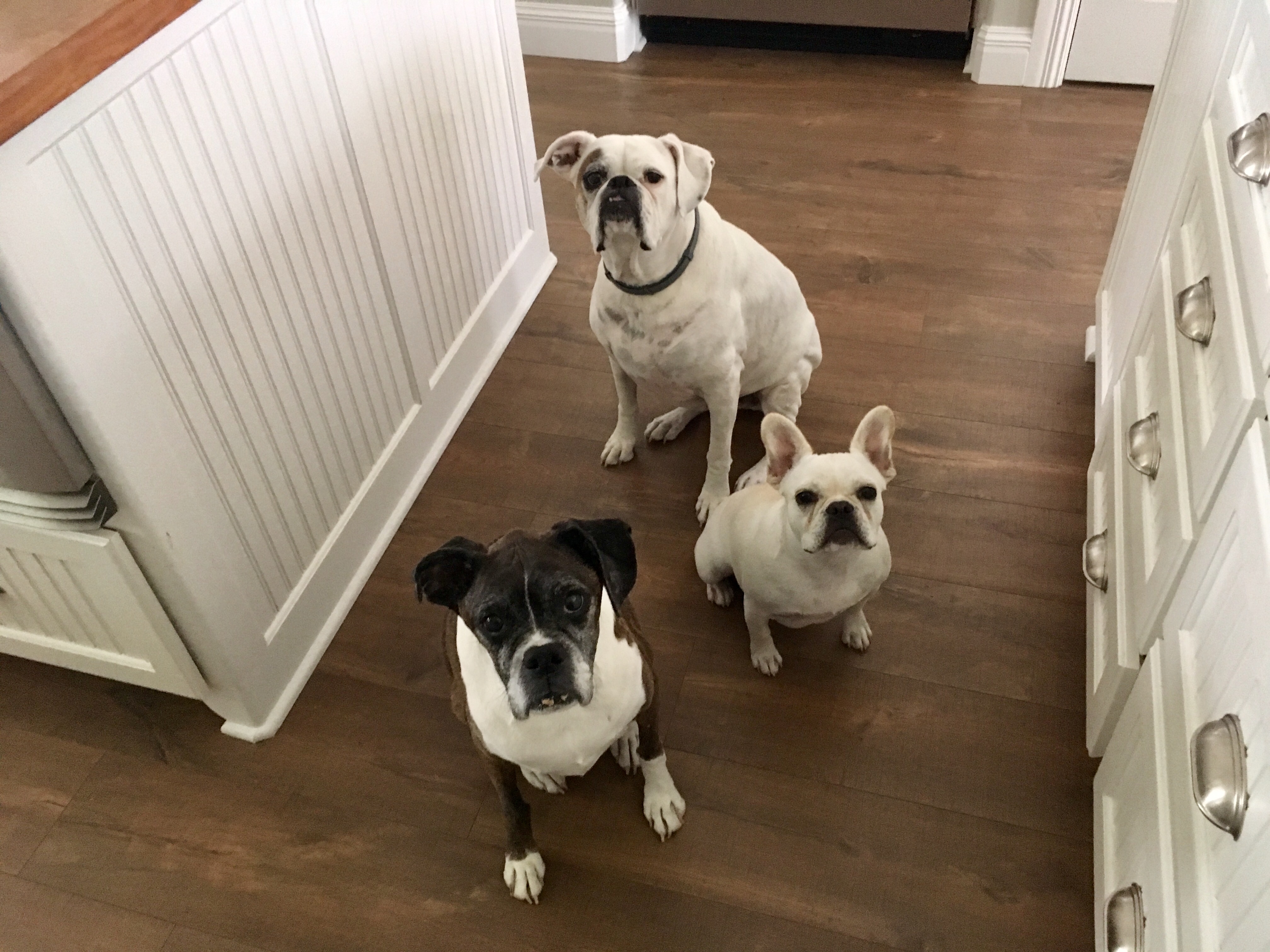 What a wonderful family portrait — I can’t imagine you see them like that very often, unless there might be a food bowl in your hand! Happy Thanksgiving to you and the producer, John, and an extra pat for each of those three.