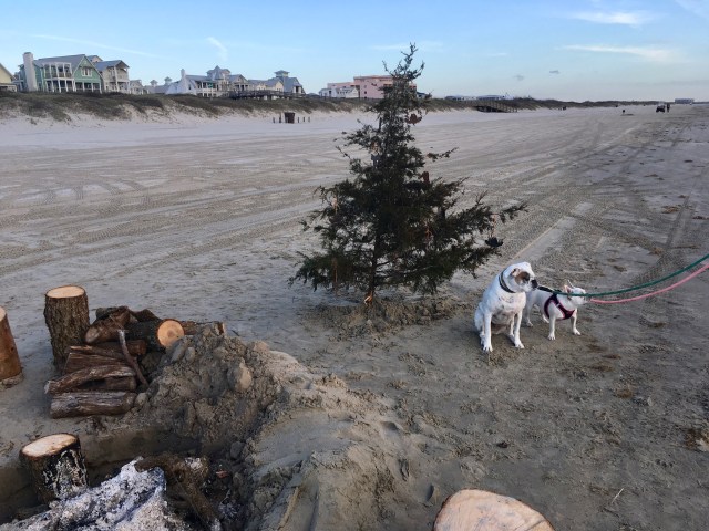 Beach, bonfire, old Christmas tree, beer poured on sand… That sounds like a tame New Year’s Eve party. Are you sure you didn’t go through some kind of portal? I don’t think you were in Texas… Hugs!