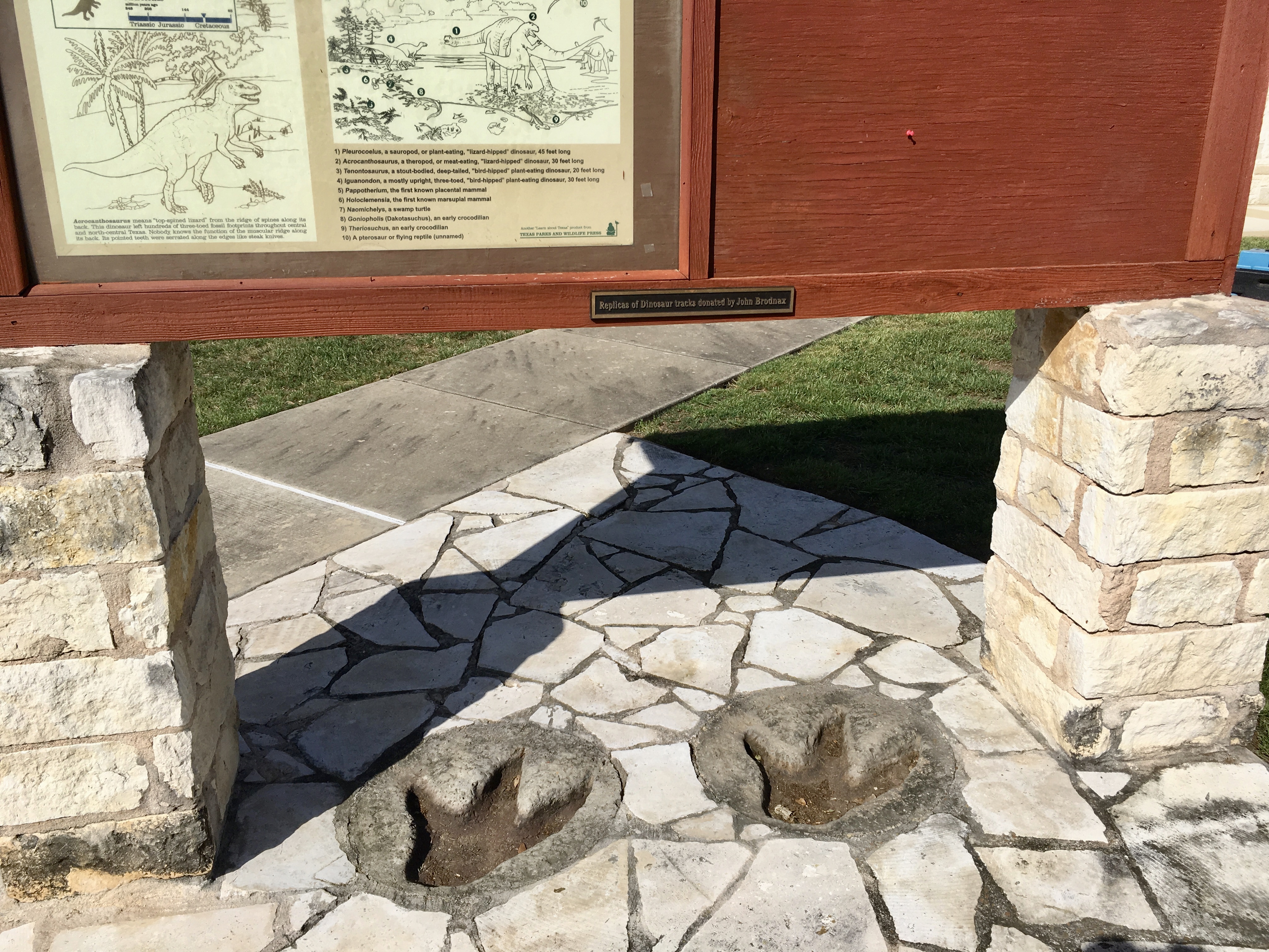 The first stop is an informative sign pointing out that dinosaurs used to roam this area. There a couple of footprint replicas below the information.