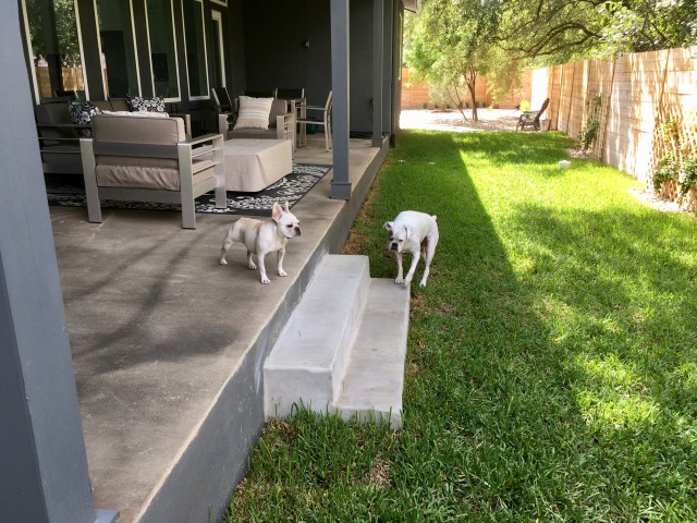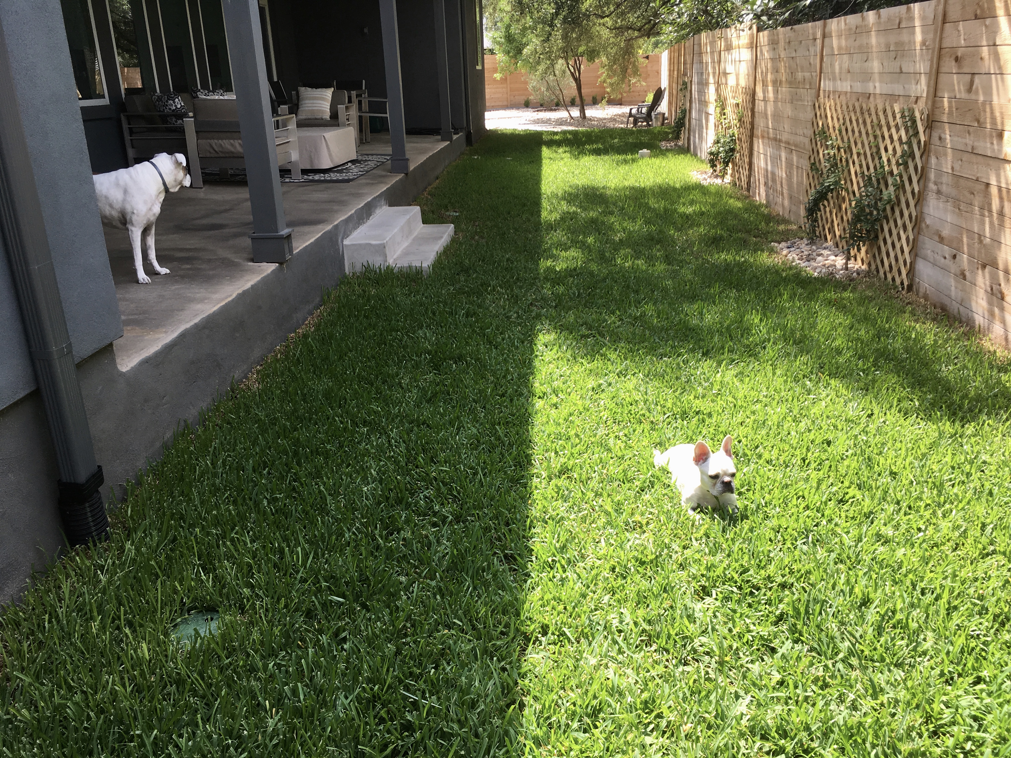 I love the last line. Perfect! Your pups know who’s the boss. 😀 The backyard looks beautiful, John.