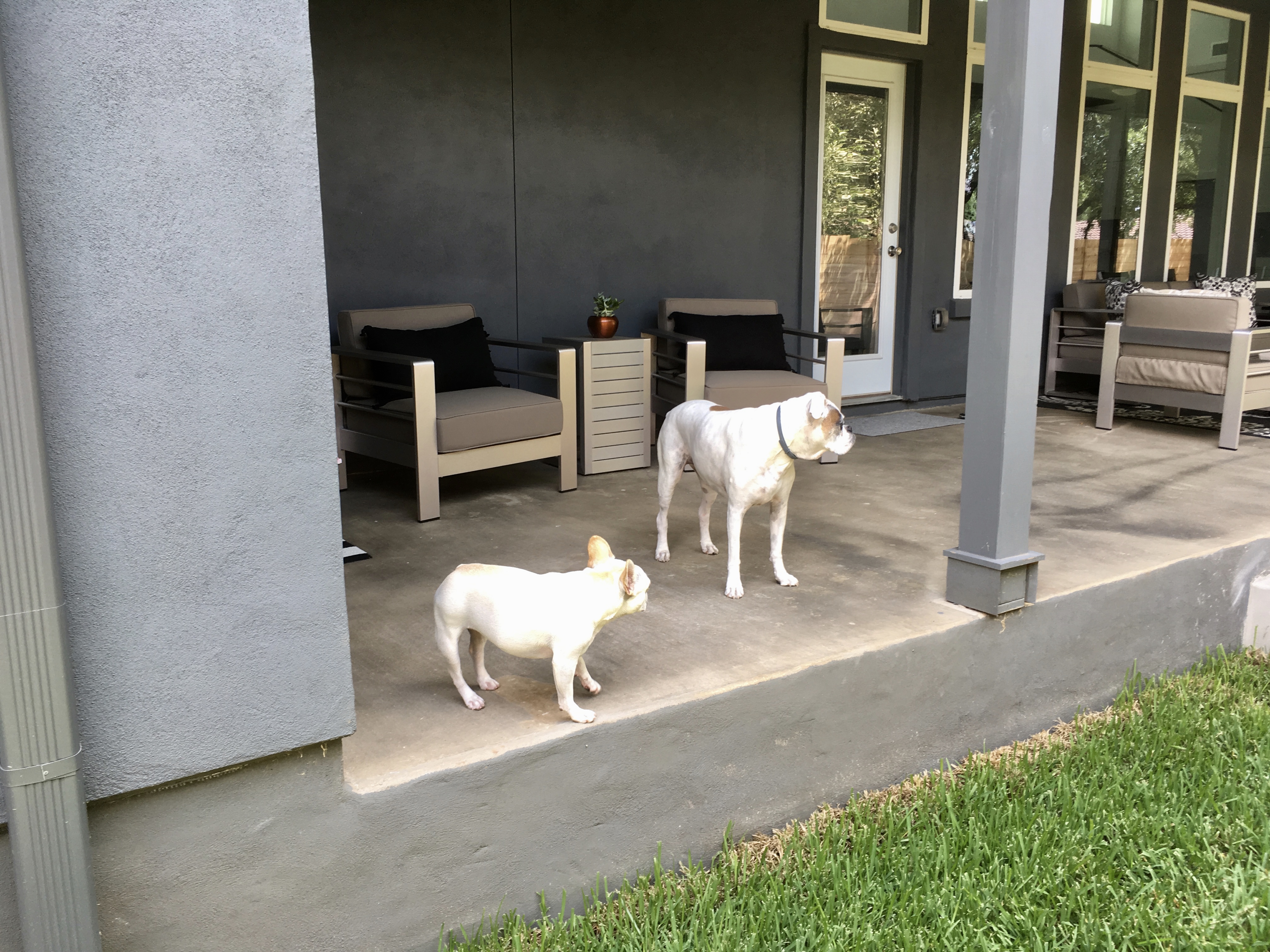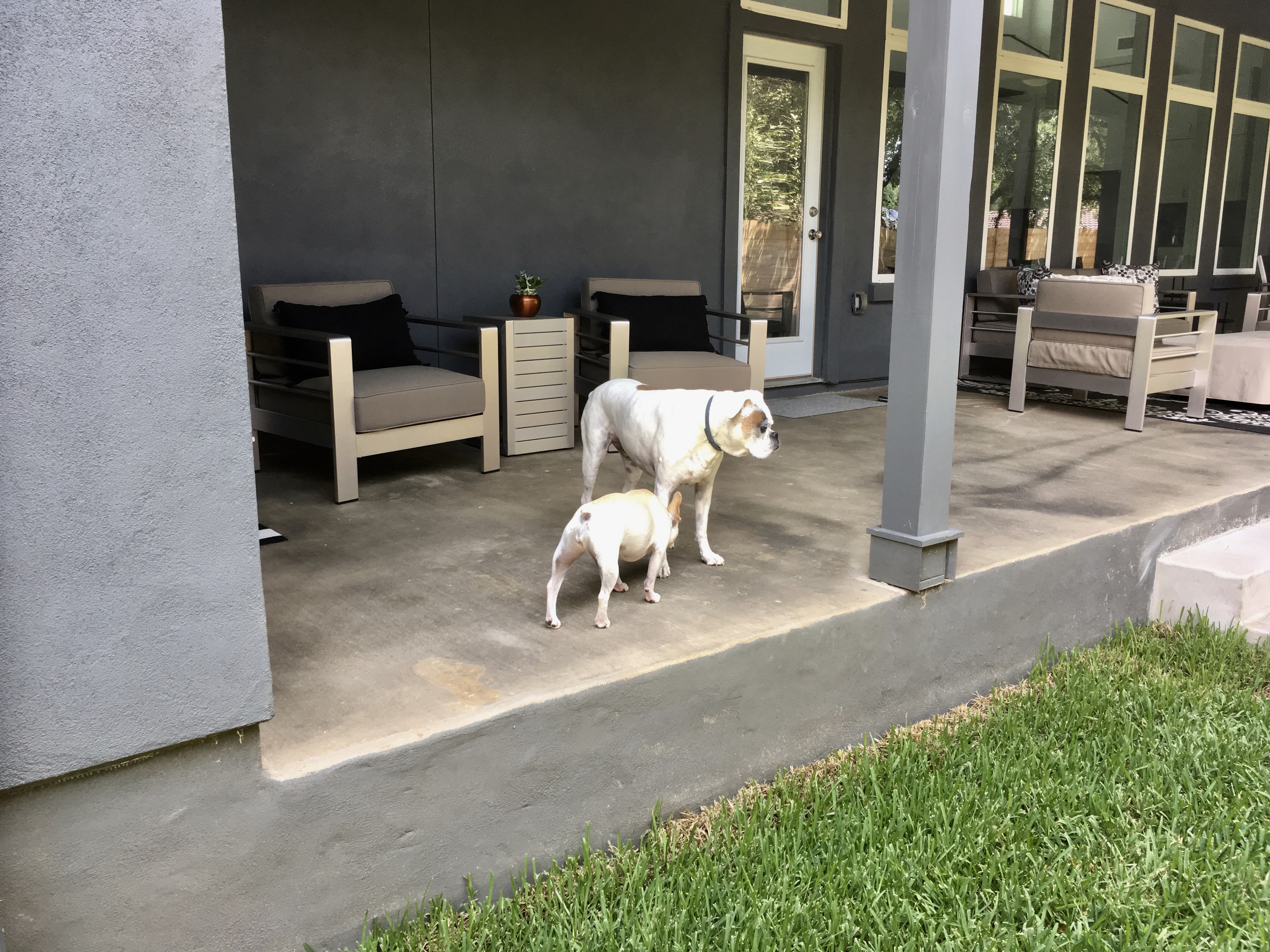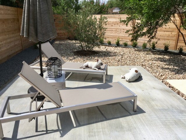 Two patios! That is so cool (no pun intended). Love Twiggy on the lounge chair ❤️