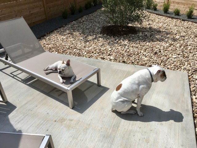 Your “cool front” is 97 degrees? Wow! I think the girls need cabana drinks, the umbrella and a doggie pool!