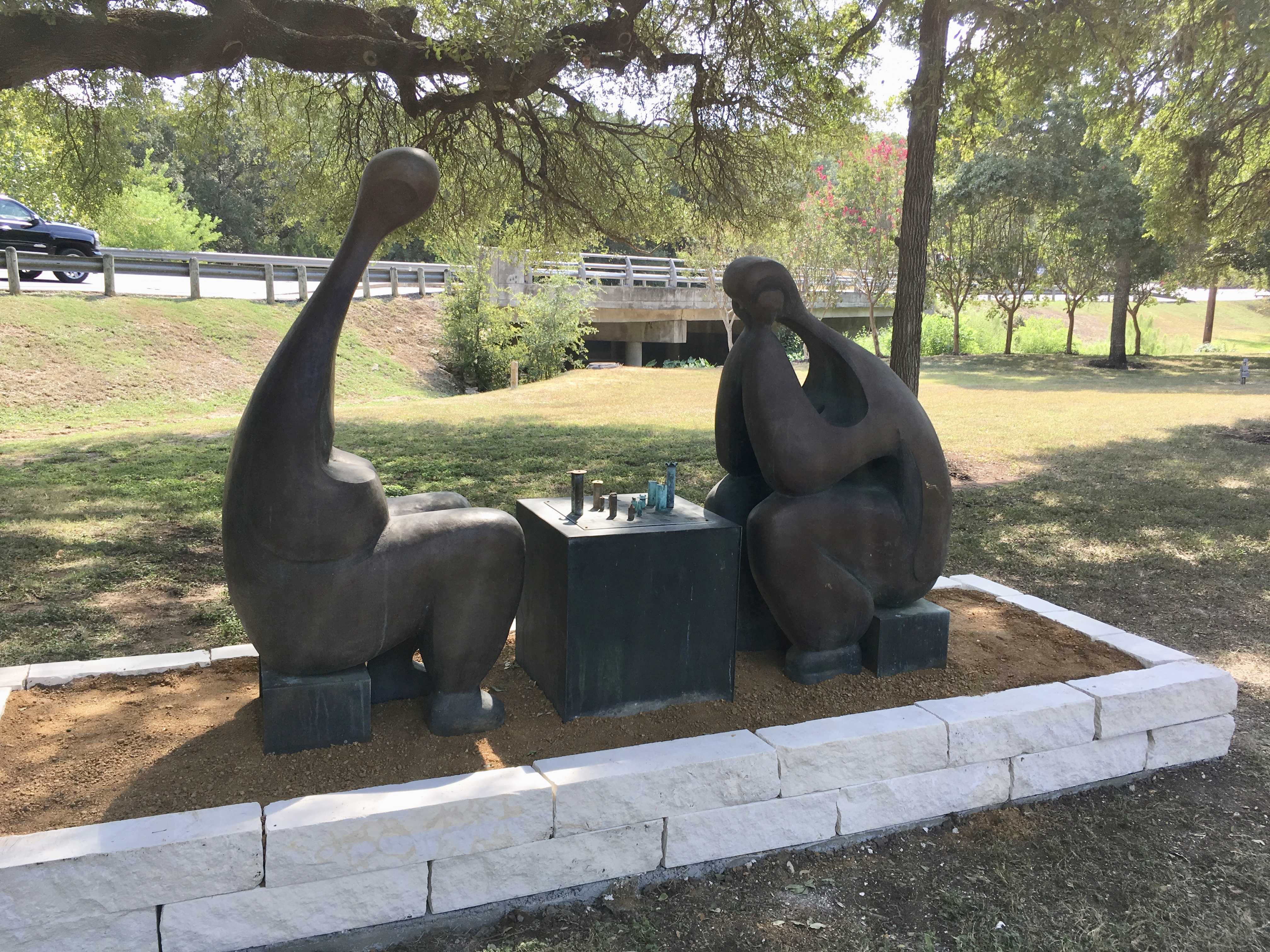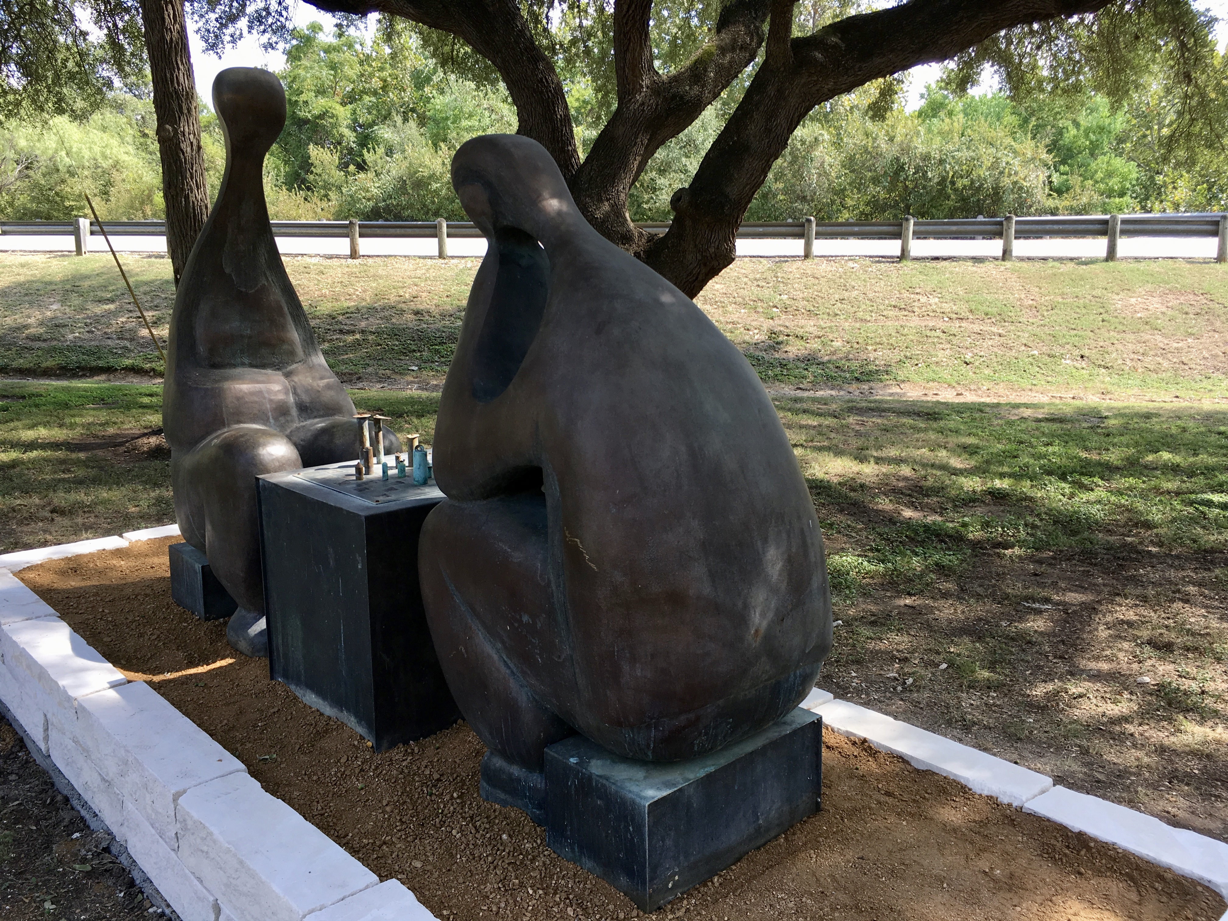 The chess players are wonderful. They remind me of Henry Moore’s abstract sculptures. I smiled at the chess pieces, too — a nice contrast to the players, and quite creatively done.