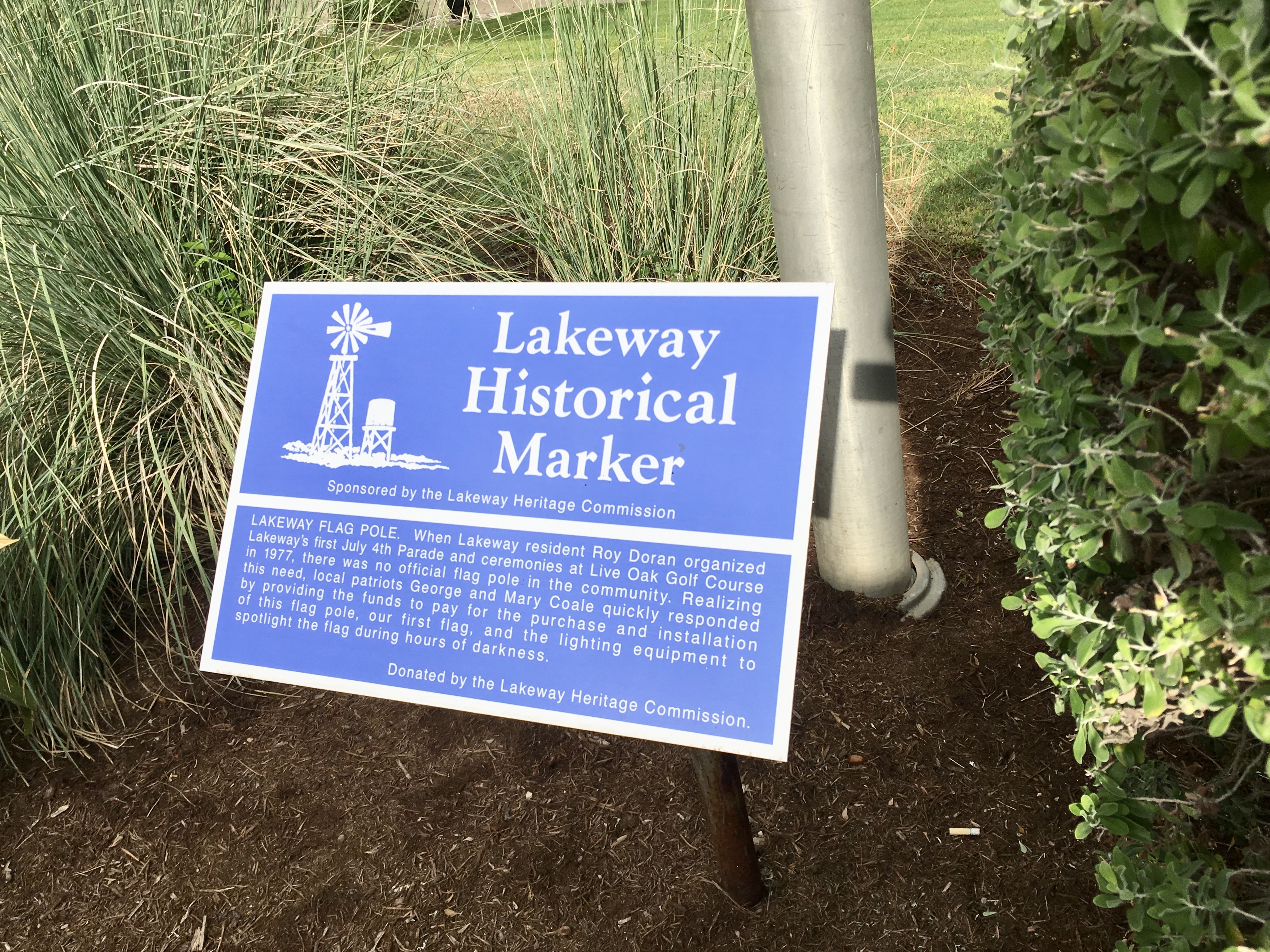 The flagpole on the Live Oak Country Club grounds was the first community flag pole and was the focal point for the beginning of the Fourth of July parade. It was installed in 1977.