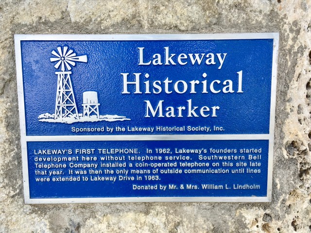 The site of the first pay telephone (and first telephone in Lakeway) installed in 1962.
