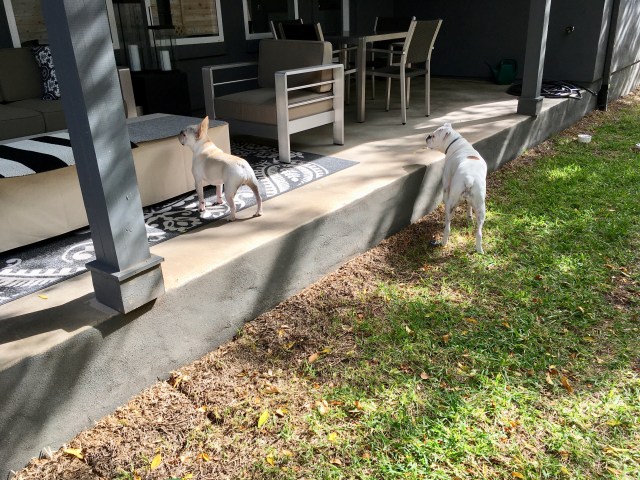These two are just sooo cute! Glad they got a nice day to play outside. Up here, as you remember, those are few and far between at this time of year! Your back yard is lovely — lots of work went into that, and I know you’re both glad it’s done so all can enjoy it.