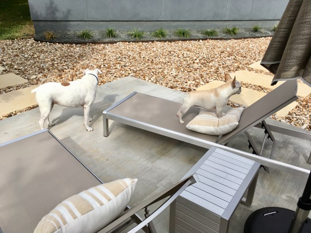 LOL! Twiggy having a little separation anxiety. She is so cute. Hopefully, your temperatures stay nice for you and you can get out to the lounge and relax and enjoy those cushions along with the girls.