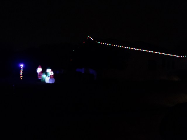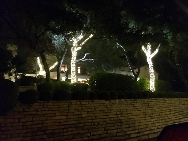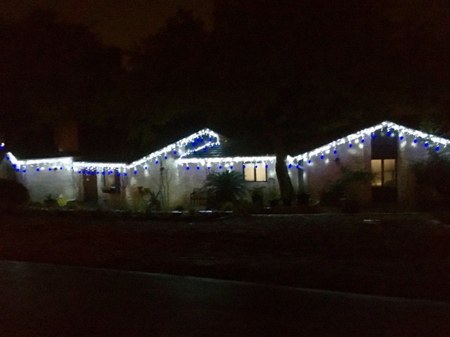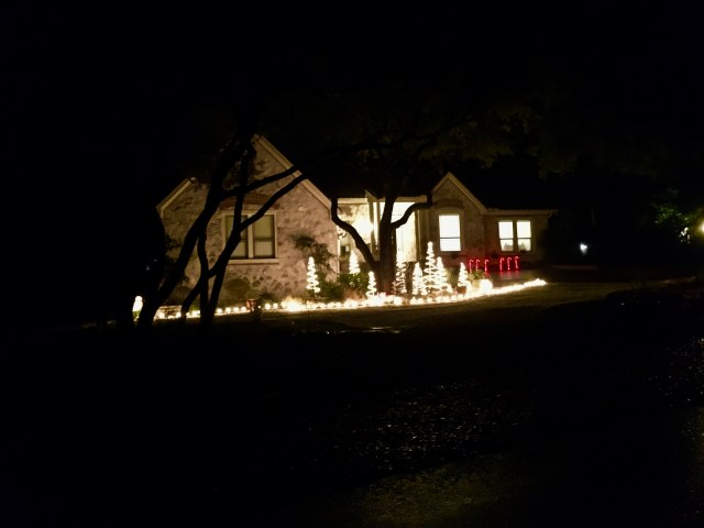 I especially like the decorated agave, and the house with blue lights interspered with the white. Those are traditional colors for Hanukkah, and I wondered briefly whether a Jewish family had decided to join in the fesitivities, but then I remember that there was a time in the ’60s when blue lights were all the rage in Iowa. Maybe it’s a matter of fashion — what went around is coming around. In any event, it’s very pretty. Merry Christmas to you and yours!