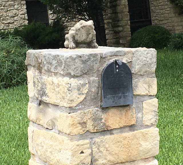 Great photos, John. I love the one with the frog. We used to have a picturesque mailbox, but our nearly blind 95-year-old neighbor backed into it. Now we have a typical mailbox, located far from our neighbor’s driving path. 🙂