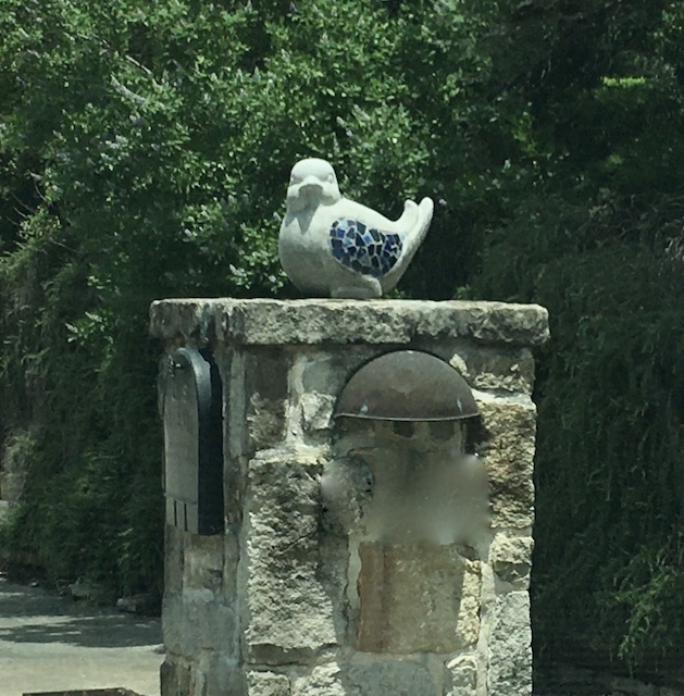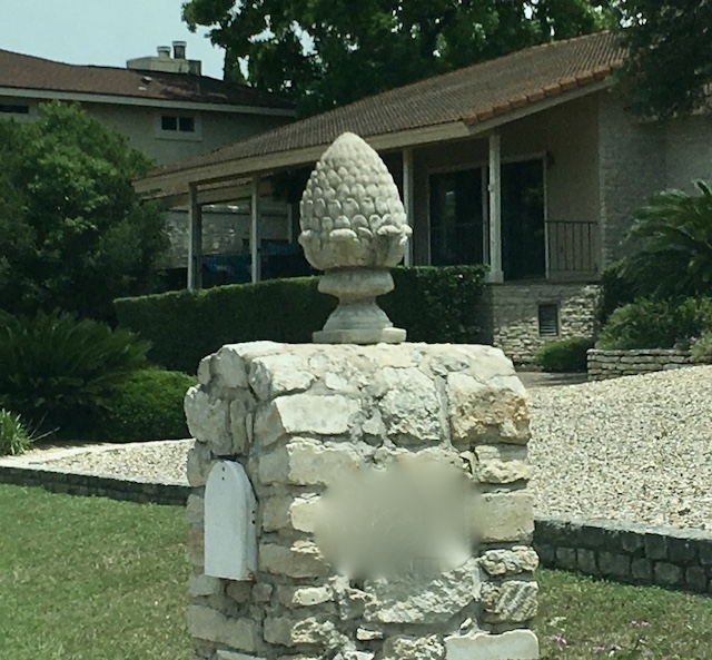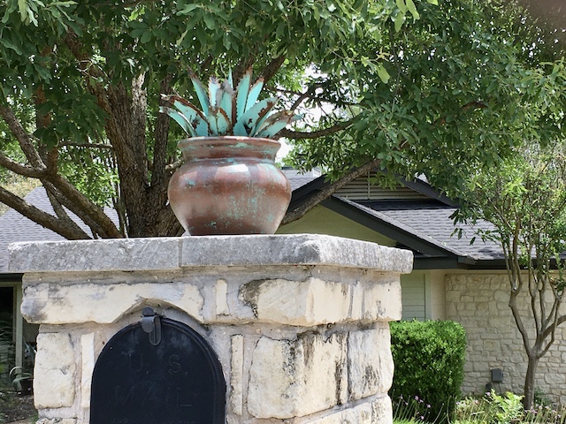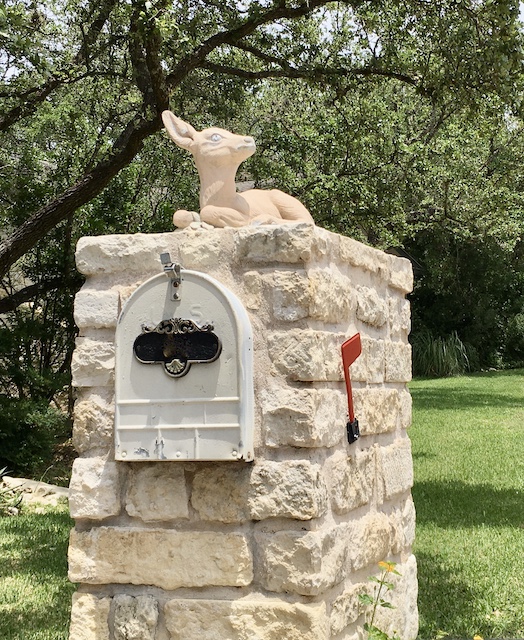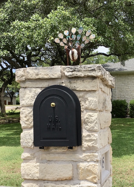 This is another view of some of the decorations that have been placed on top of mailbox holders. It hardly seems possible that I did a post over a year ago about the mailbox decorations here in Lakeway. This tour has some different ones from the last. If you missed the last one, HERE is a link. I hope you enjoy our stroll today.