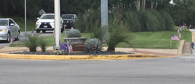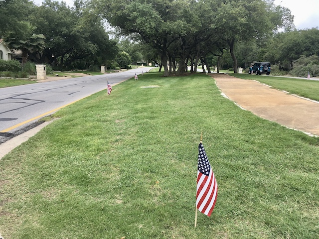 The city of Lakeway lined all the medians in town with flags. You can see they go on and on.