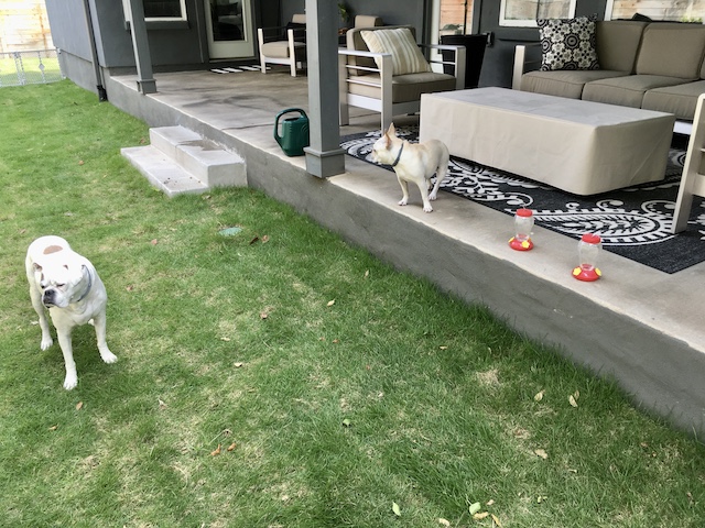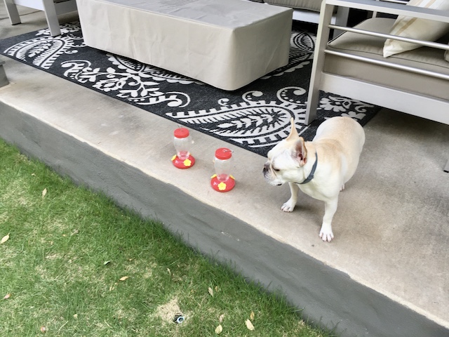 Nice to see the hummingbird feeders, John. Lucy and Twiggy seem a little mellow today. 🙂