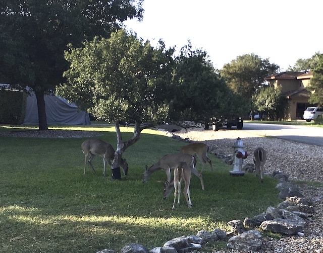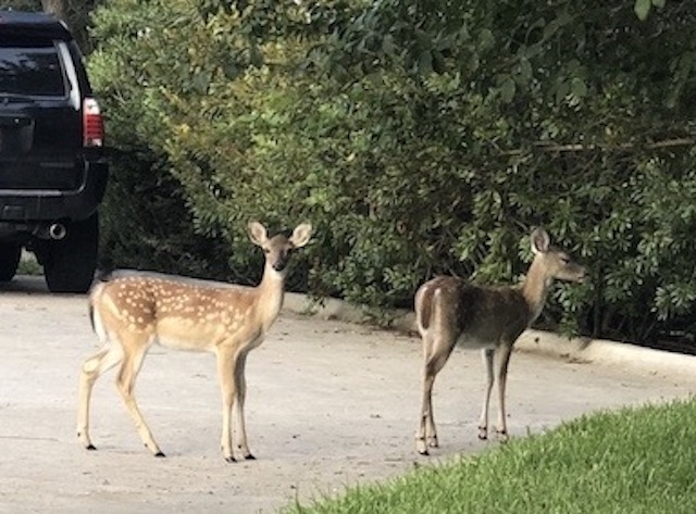 I always enjoy seeing the Axis. They confused me at first, when I saw them from afar; I thought they were overgrown fawns. “Deer check” brought to mind “bed check.” It wasn’t just for camp. My first year of college, bed checks were standard for freshman girls. We had curfews of 10 p.m. during the week, and 1 a.m. on weekends. During the week, it was lights out at 11 p.m. Wander over to UT and ask the young women there what they’d think of that!