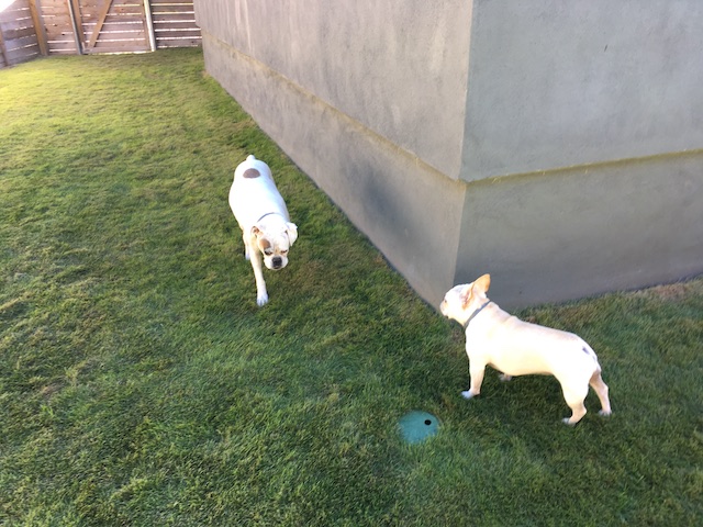 Otto has always hated the squirrel. Frankie didn’t care and thought he was playing with her. She caught on and is the main instigator now. They don’t exactly look like tree hounds when they get him cornered.