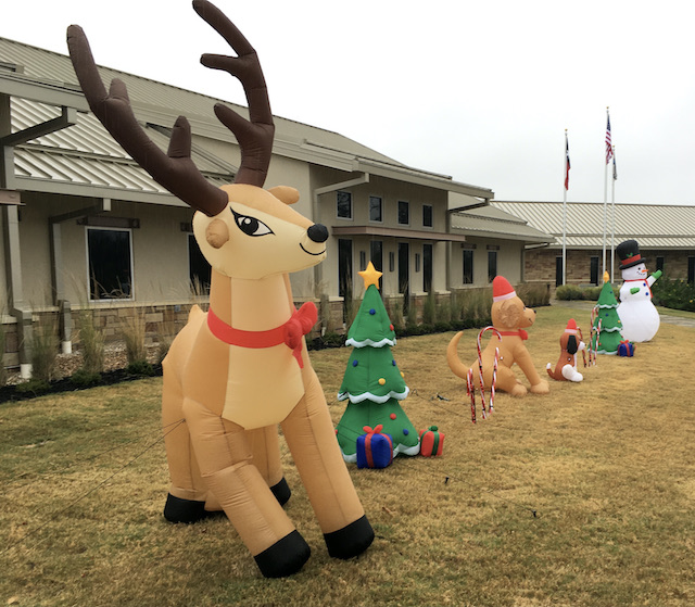 Our first stop is the Lakeway Police station. (All right. Everyone keep your seats) The Lakeway Police Department is hosting the Green Santa toy drop off. The Green Santa drive ensures that no child goes without a gift this Holiday Season.