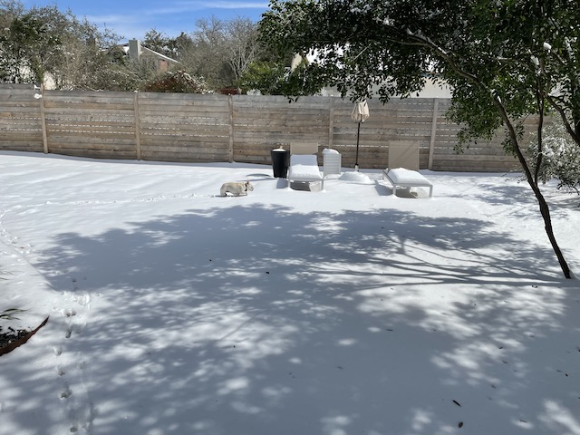 Dogs take naturally to snow. Me? Not so much. Forced to by circumstances. Maybe I should move to Texas…