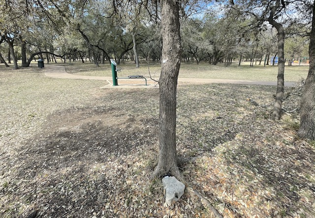 On the lower level of City Park, there is a popular place to play. Stand at the blue post that has 2 seats on each side, and you have found your starting point.”